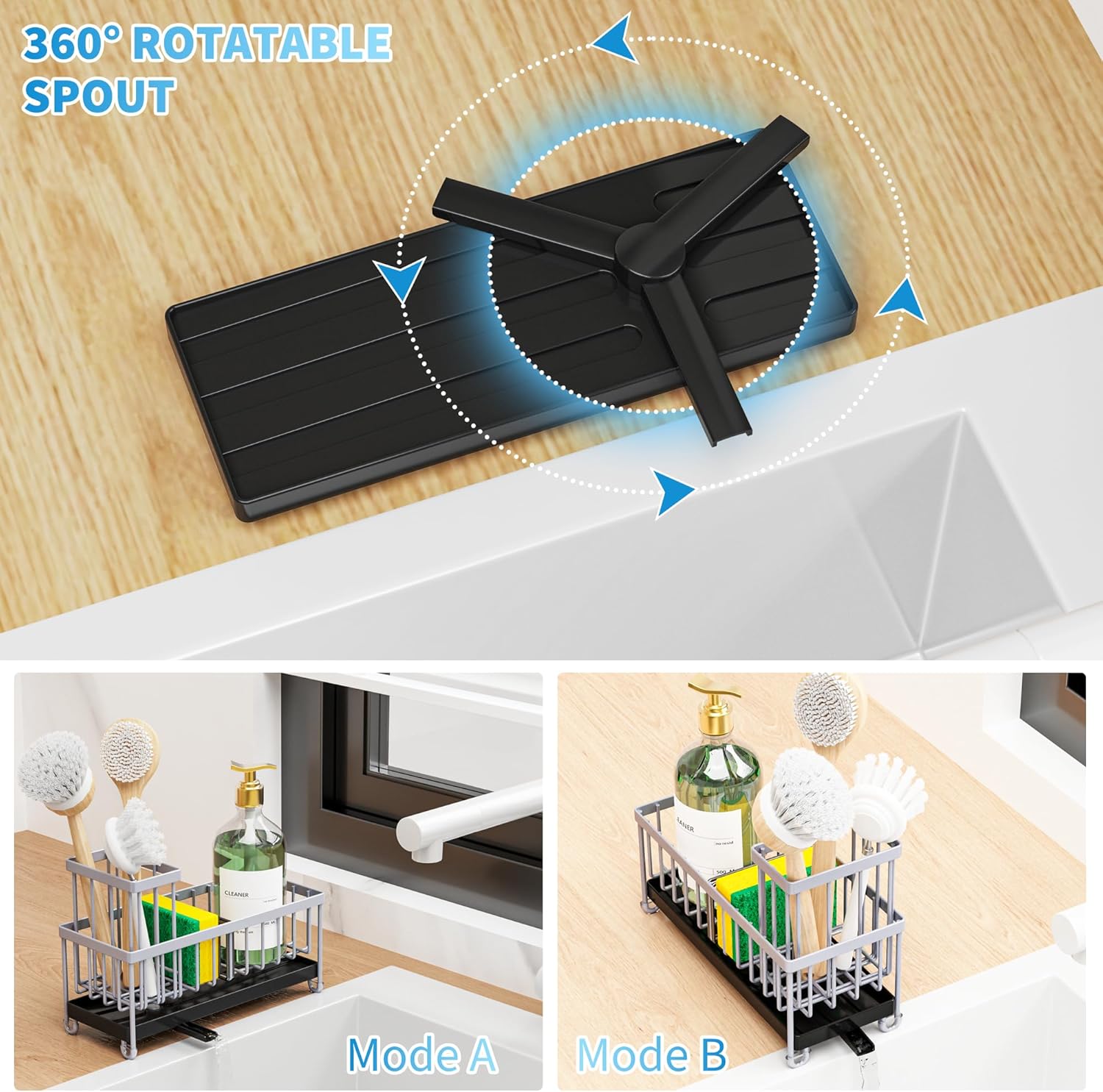 Cisily Light Gray Sponge Holder for Kitchen Sink, Sink Caddy Organizer with High Brush Holder, Kitchen Countertop Organizers and Storage Essentials, Rustproof 304 Stainless Steel, Soap Dispenser