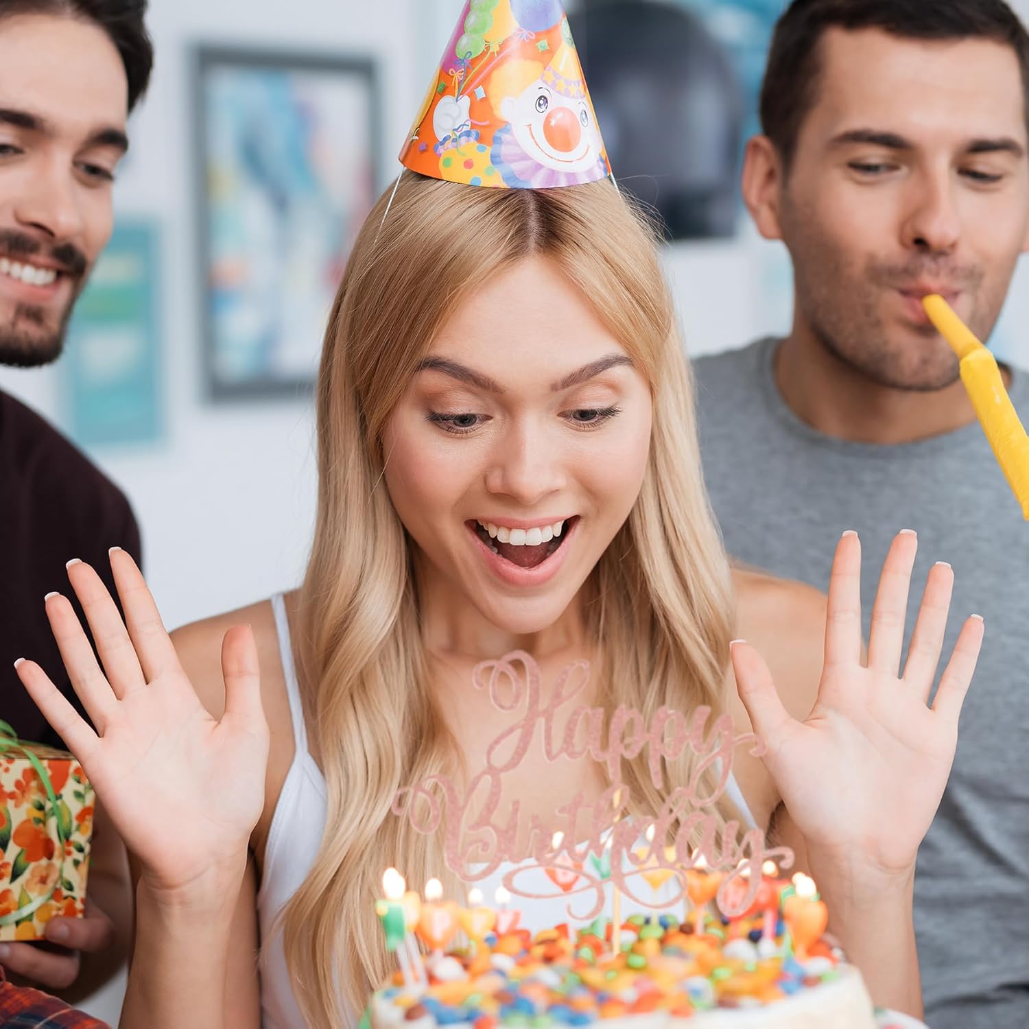 Happy Birthday Cake Toppers 9 Inch Glitter Happy Birthday Cake Pick for Birthday Anniversary Theme Party Cake Decorations Supplies - Rose Gold