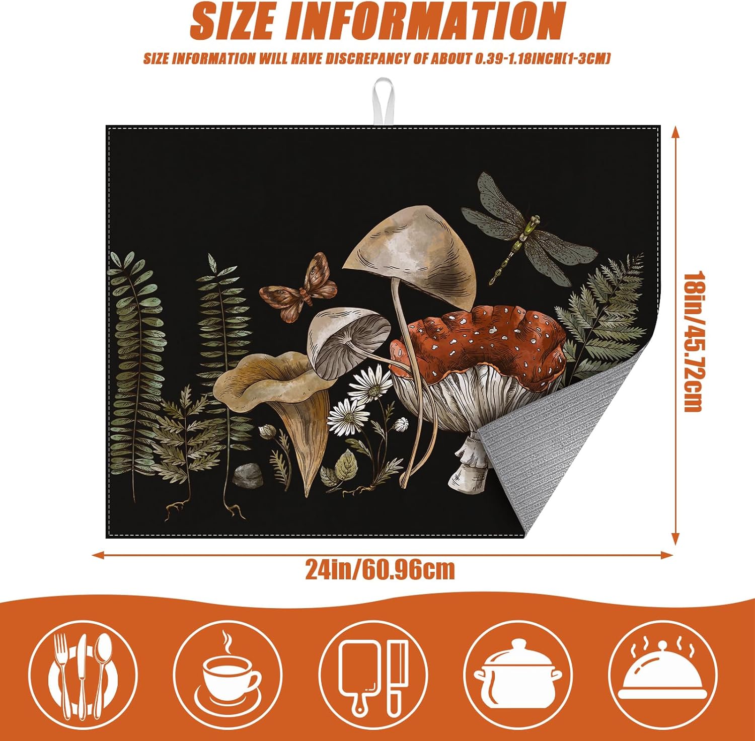 Vintage Mushroom Dish Drying Mat for Kitchen Counter Microfiber Absorbent Dish Kitchen Drying Mat Draining Reusable Washable for Dishes/Utensils/Counterto