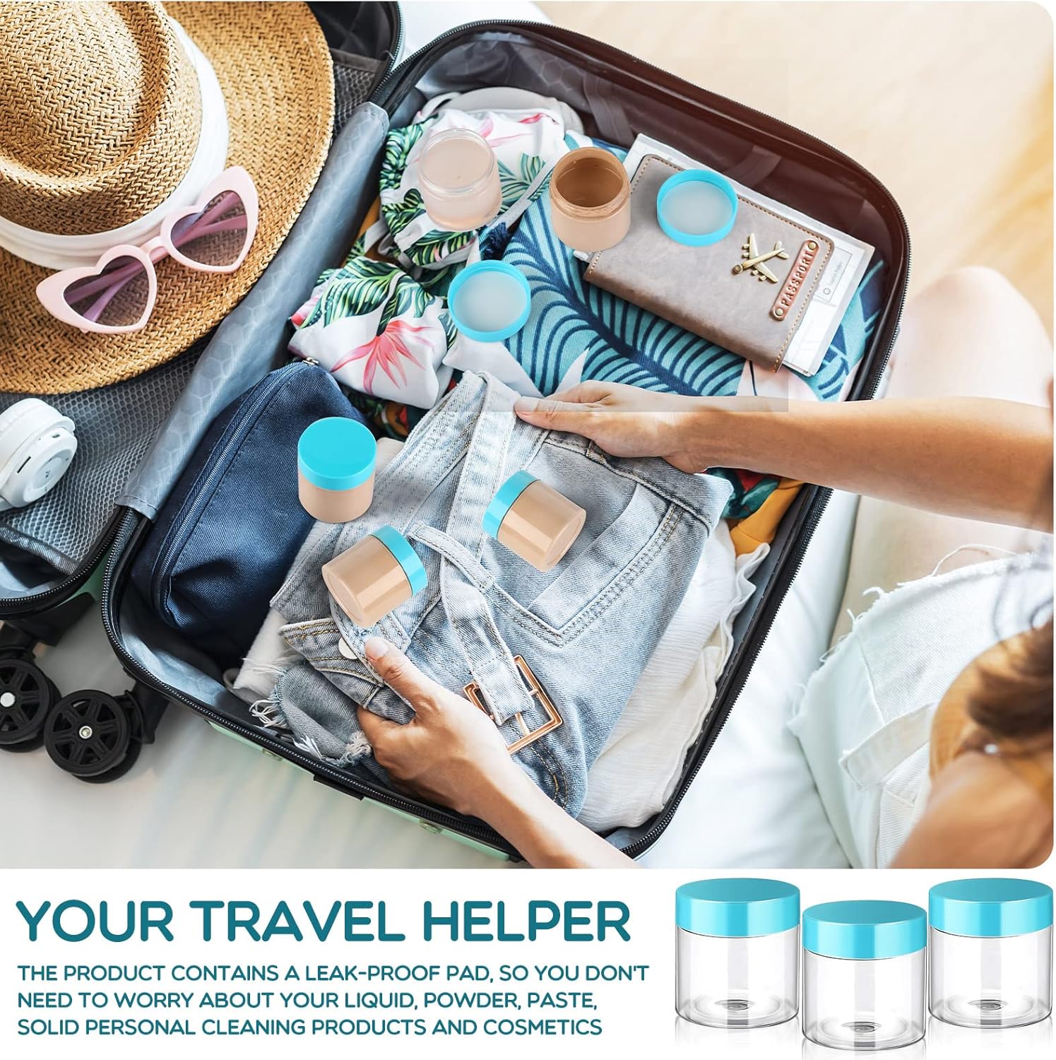 SATINIOR 6 Pack 1 oz Plastic Jars Containers with Lids Wide-mouth Refillable Leakproof Reusable Round Empty Jars for Travel Cosmetic Dry Food Spice Candy Cookie Home Kitchen Organizing(Blue)