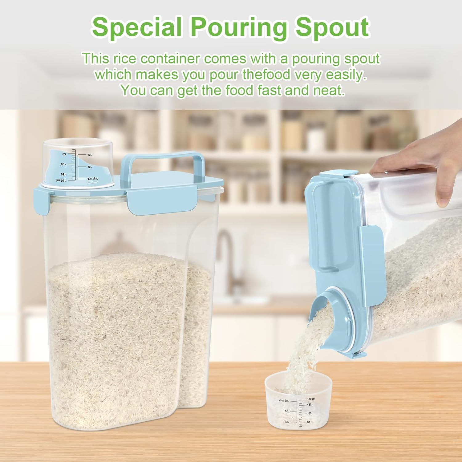 - UPGRADED EASY-POUR LARGE SPOUT: This rice Bin features a large pouring spout to easily dispense your ingredients. Its ergonomic design provides a comfortable grip for easy one-handed pouring.rice storage containers Slim compact and space-saving