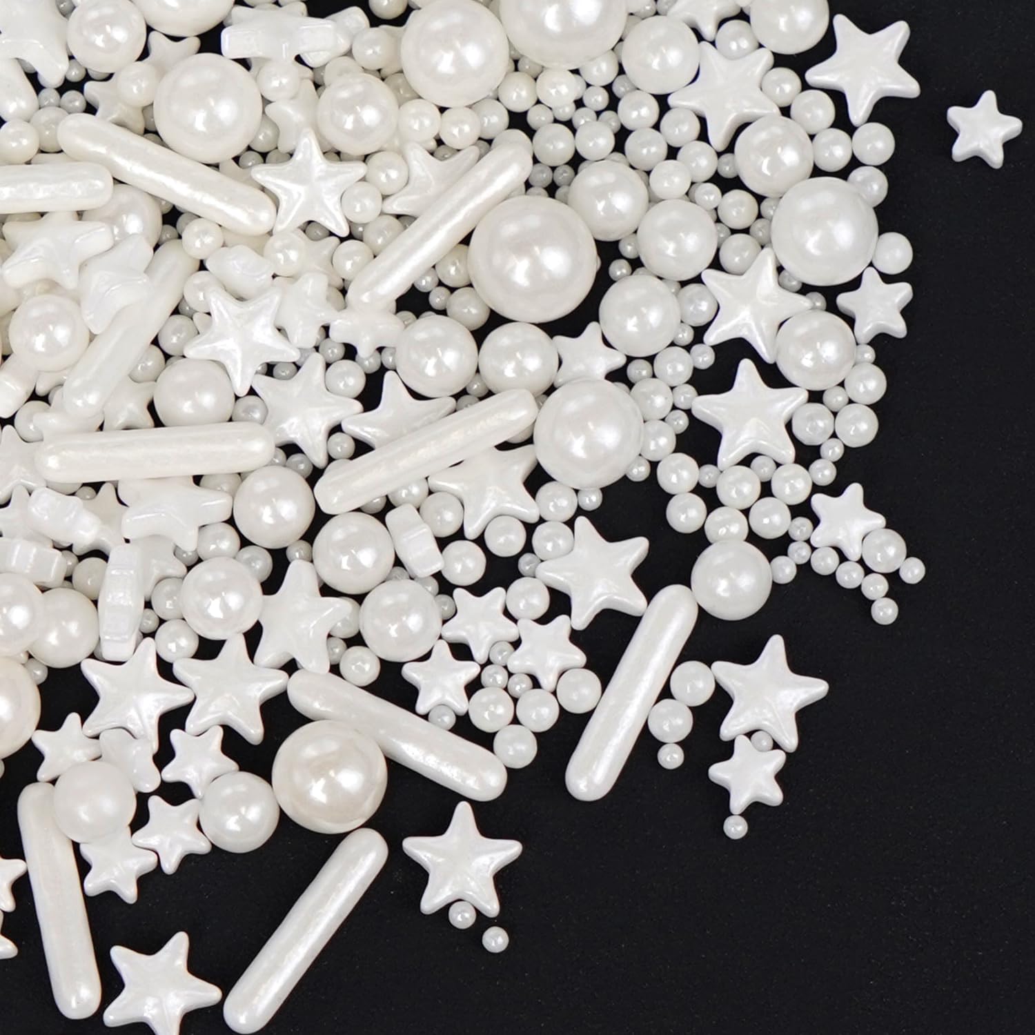 White Pearl Star Rods Sprinkles, Edible Pearls Sugar, 130g/4.58oz, White Sprinkles for Cupcake Decorating, Cupcake Toppers, Cake Decorations