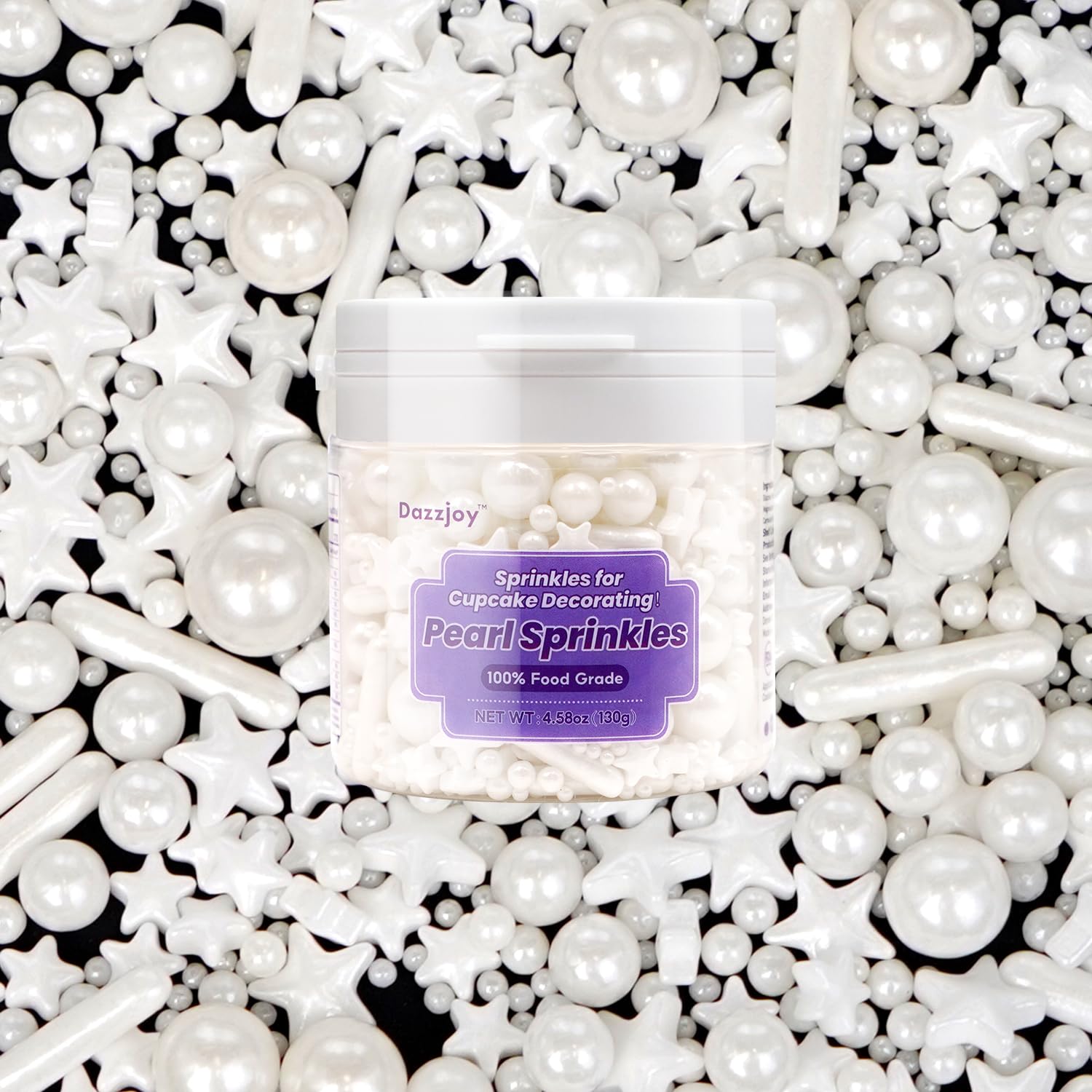 - Mix size White Pearl Sprinkles can meet the needs of decorative production of a variety of bakery products, with a high cost-effective. Pearl Sugar Sprinkles suitable for cakes, cookies, Ice cream, Cupcakes other Foods. 1 bottle of sugar sprinkles makes 3-5 cupcakes or one 3-inch diameter cake. After baking, you can place pearl sprinkles on top of the cake as decoration.