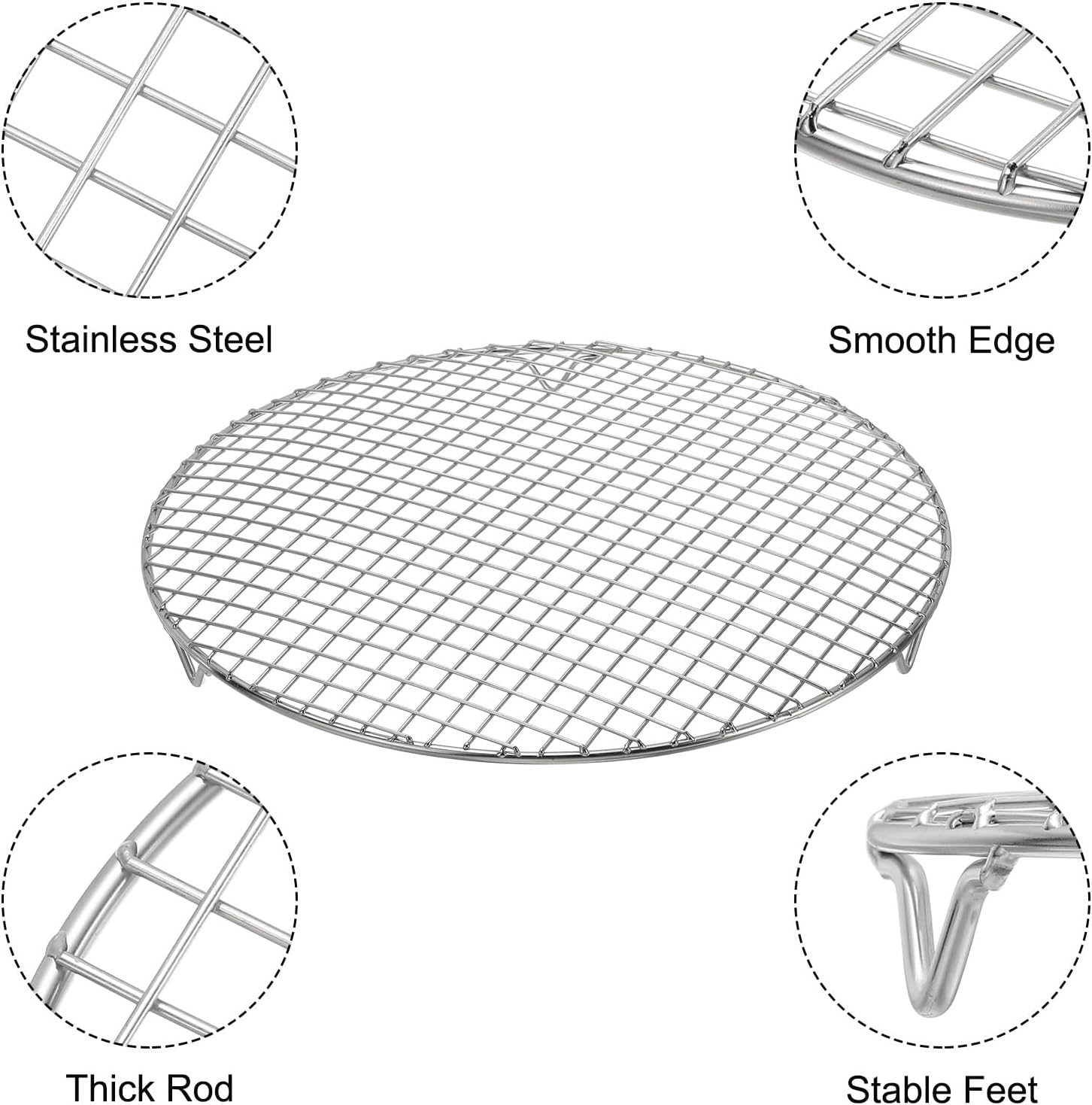 uxcell Round Cooking Rack with Legs, Dia 13 Inch 304 Stainless Steel Barbecue Grill for Cooking Baking Barbecue Air Fryer Racks, Silver