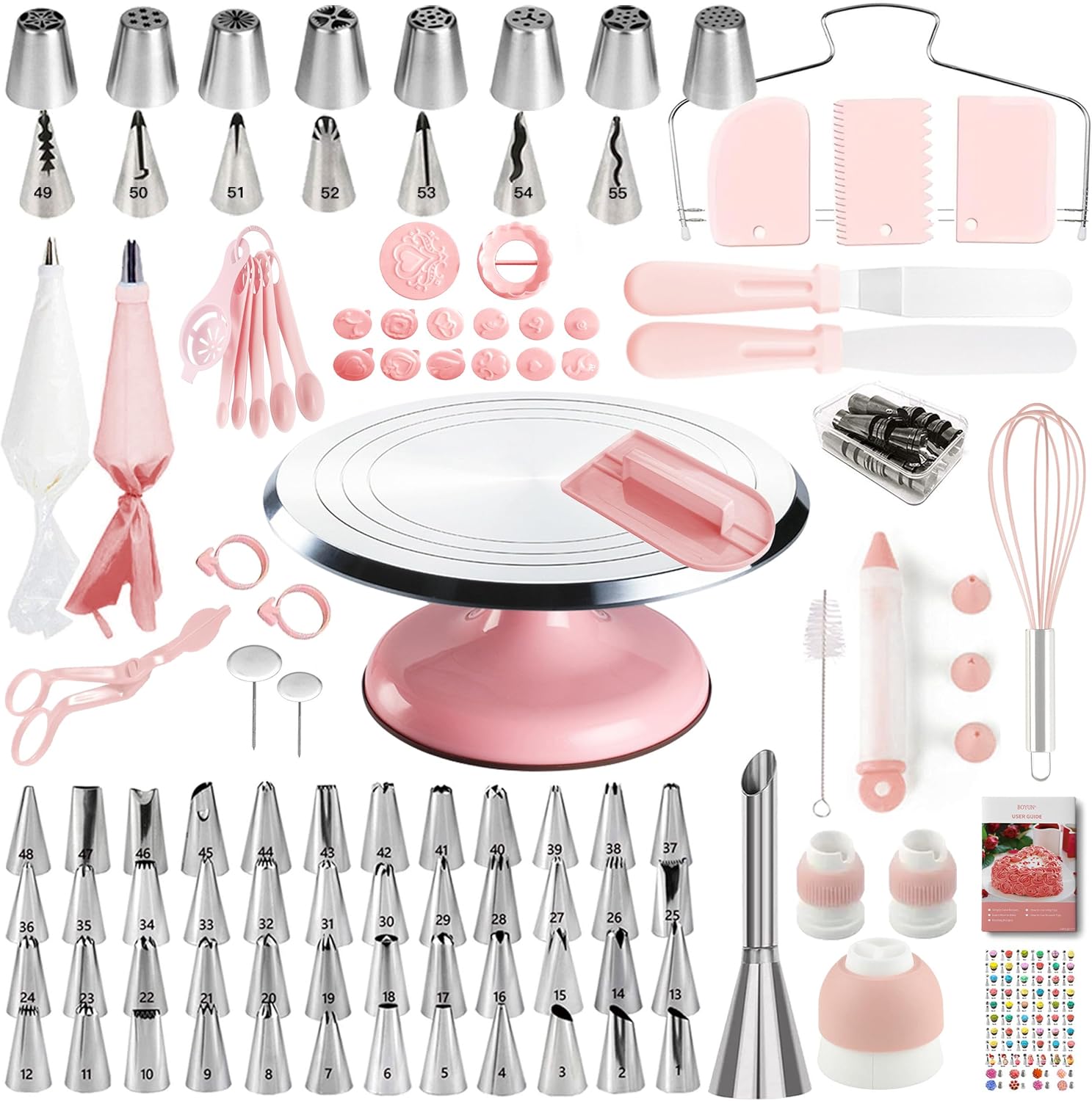 Cake Decorating Kit, 138pcs Cake Decorating Supply with Aluminium Cake Turntable, 64 Numbered Icing Piping Tips, 2 Spatulas, 3 Icing Comb Scraper and Leveller, 32 Piping Bags,cake decorating tool