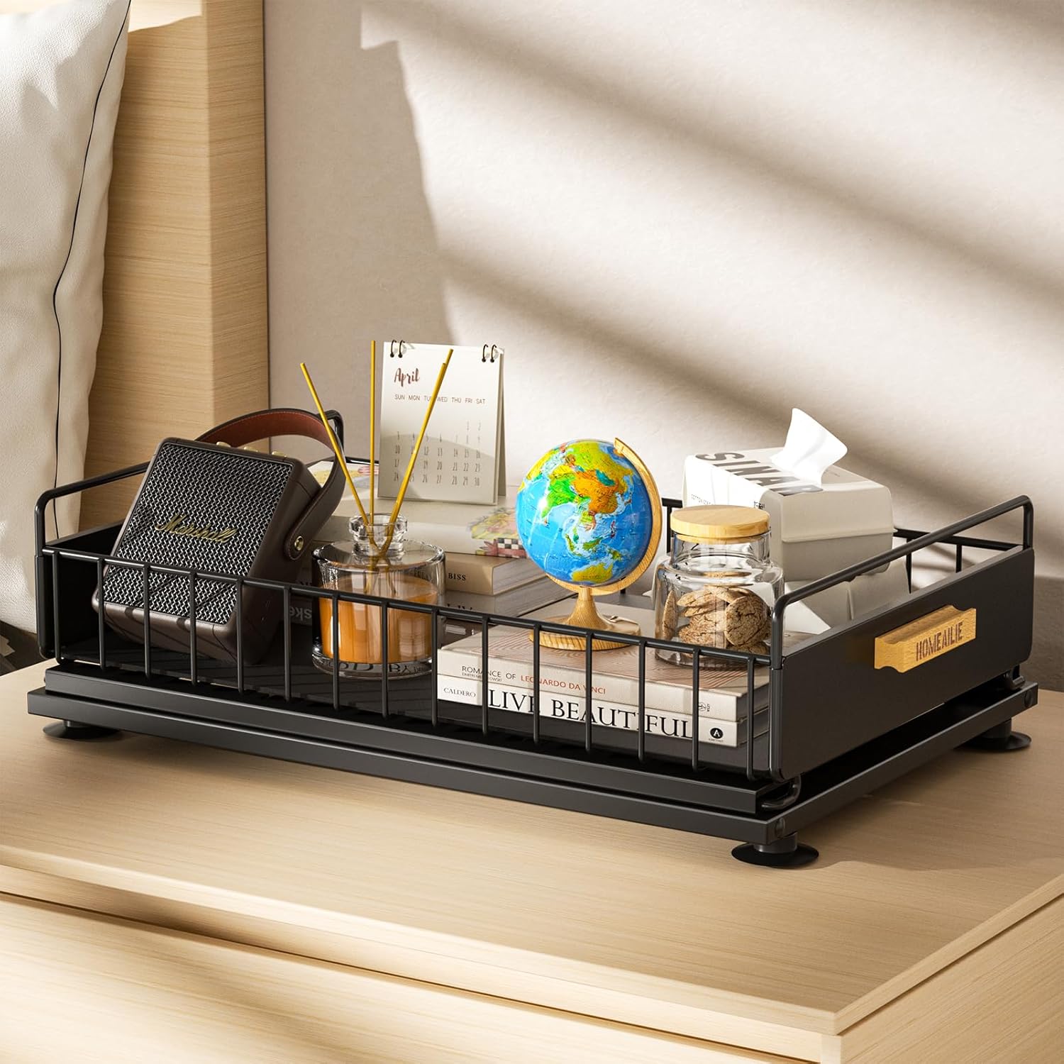 - Expandable Space & Slide-Out Design:Kitchen cabinet organizer quickly access items with smooth pull-out sliding tracks (Noise-Reduction Damping Technology) — no more bending down to search under sink cabinets