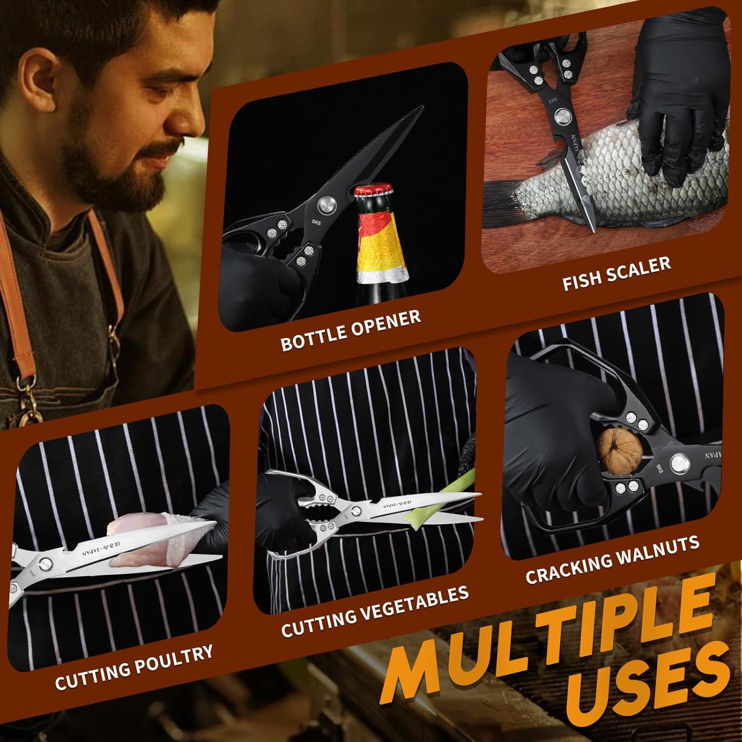 - Two Color Options--This cooking shear set includes one silver and one black kitchen shear. The silver kitchen scissor offers a classic and elegant appearance, perfect for any kitchen setting, while the black turkey shear adds a modern and sleek touch, elevating your culinary experience with its sophisticated look. Choose the color that best matches your kitchen style and needs.
