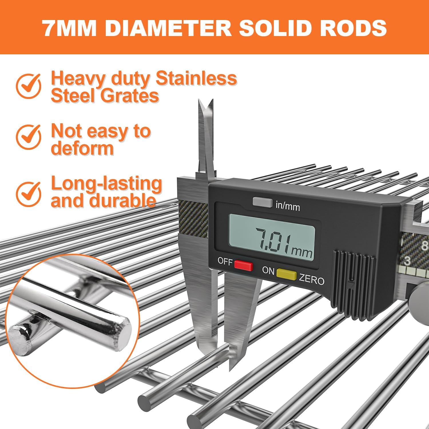 - Premium Material & Safety Assurance: Crafted from premium stainless steel, KEESHA grates resist rust while ensuring uniform heating and exceptional corrosion resistance. Their edge-grinding design eliminates sharp edges, featuring smooth surfaces and precision welds for complete hand safety during use. Their robust construction withstands high temperatures and frequent use without warping or degradation.
