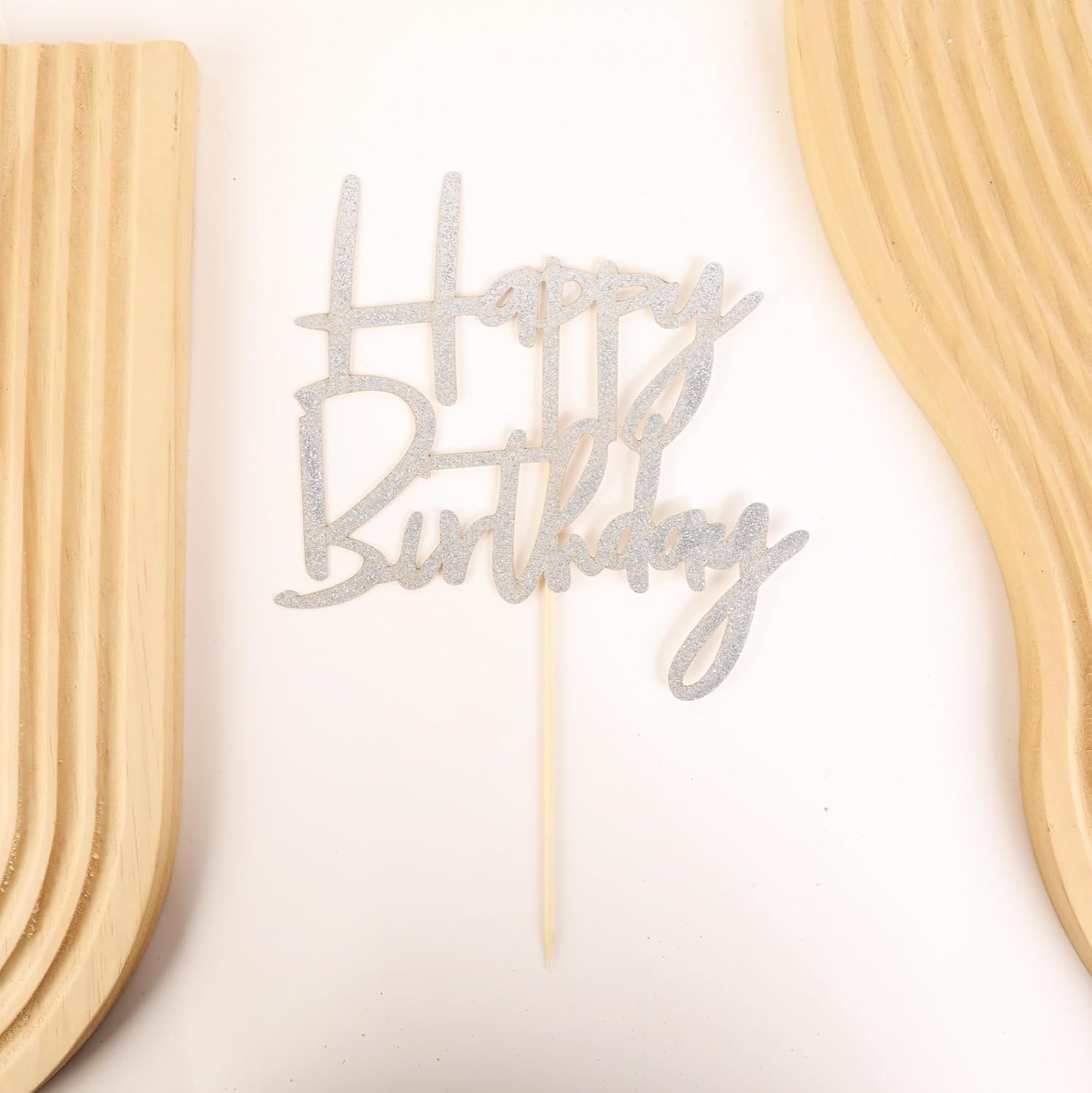 Happy Birthday Cake Topper - Glitter Silver Birthday Cake Top Decorations (Silver)