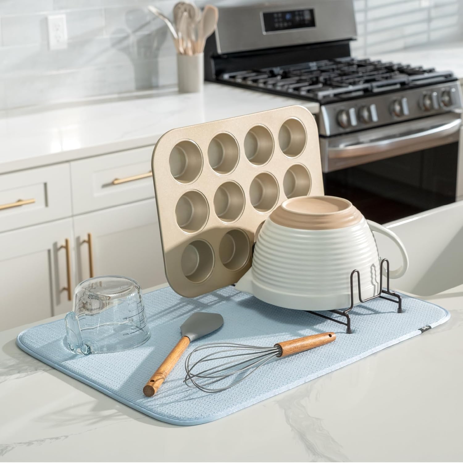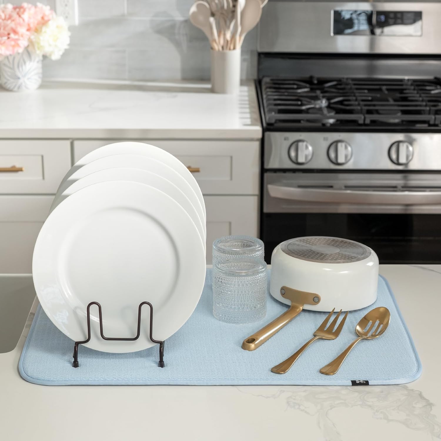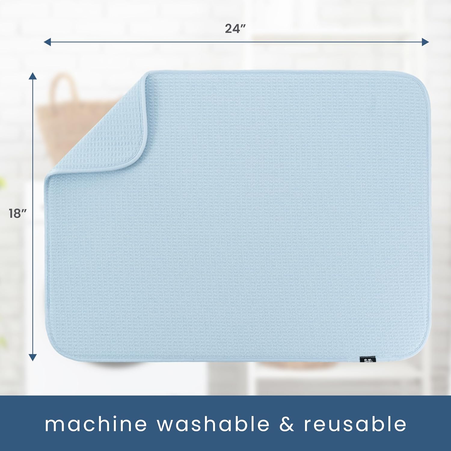 S&T INC. Dish Drying Mat XL, 18” x 24”, Absorbent Microfiber Kitchen Counter Mat, Dish Drying Pad for Dishes, Utensils, Pots and Pans, Extra Large, Sky Blue