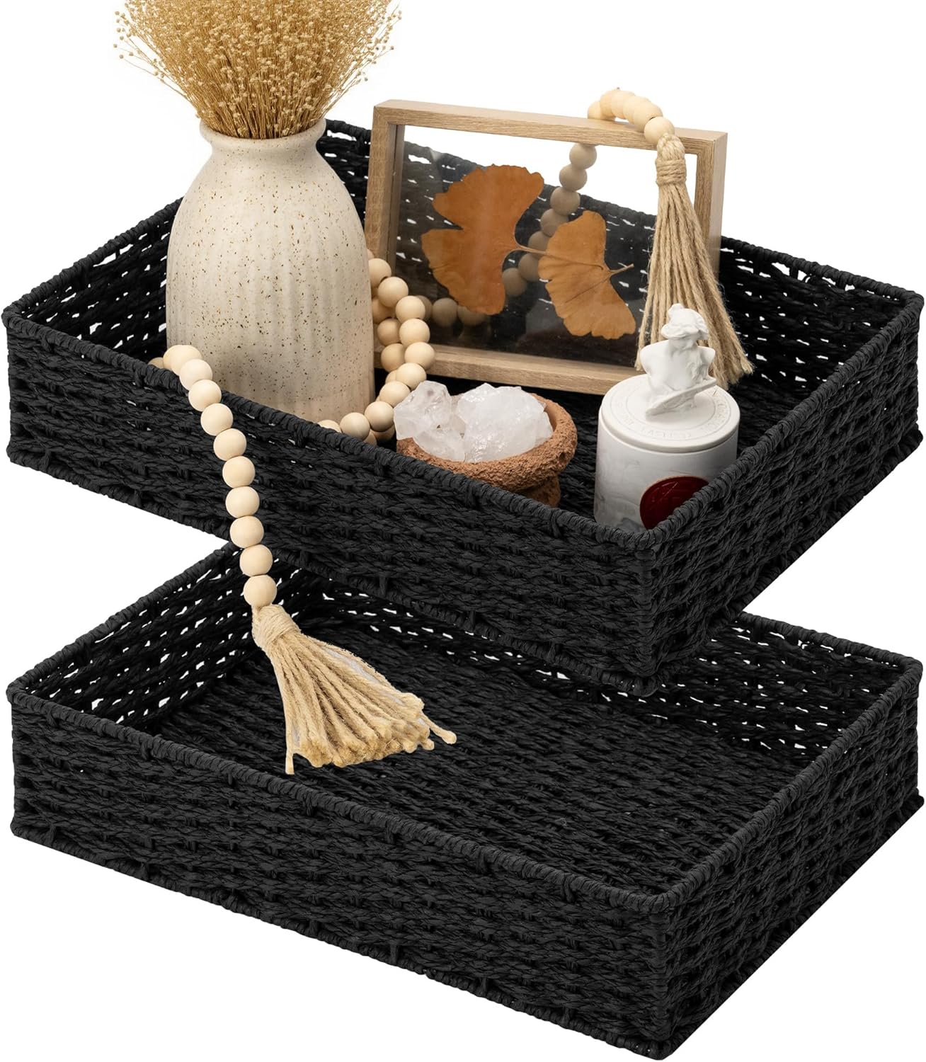 StorageWorks Bathroom Vanity Tray for Countertop, Bathroom Counter Tray for Decorative, Toilet Paper Baskets, Black, Larger, 2 Pack