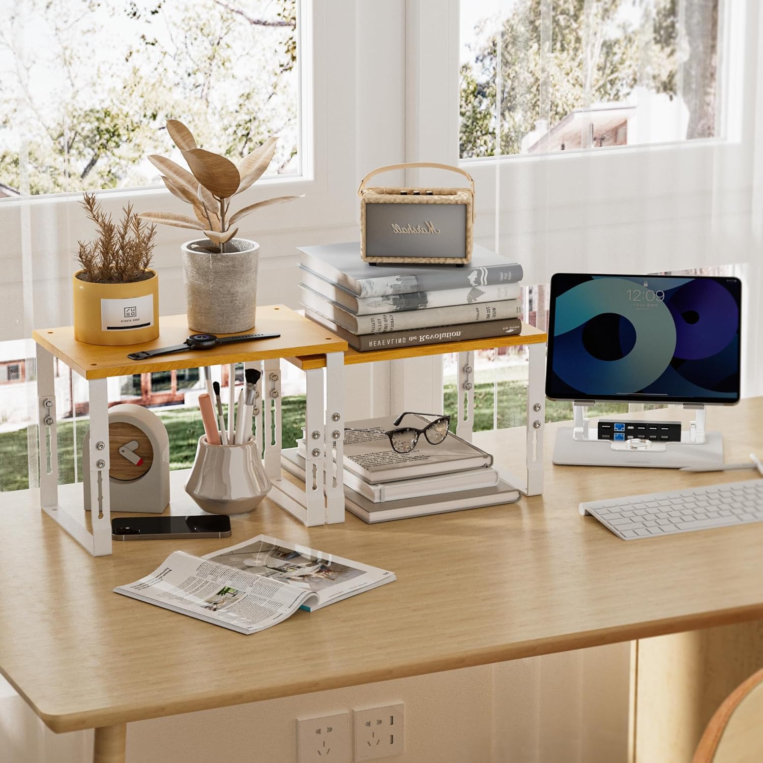 Expandable Kitchen Cabinet Organizer Shelves – Stackable Adjustable Metal and Wood Storage Racks for Countertop, Pantry, Garage Set of 2 Spice Rack – Easy Assembly, Space-Saving(1 Pack/Large/White)