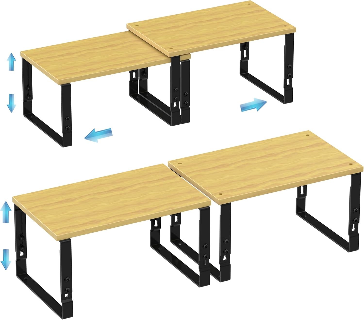 Expandable Kitchen Cabinet Organizer Shelves – Stackable Adjustable Metal and Wood Storage Racks for Countertop, Pantry, Garage Set of 2 Spice Rack – Easy Assembly, Space-Saving(2 Packs/Medium/Black)