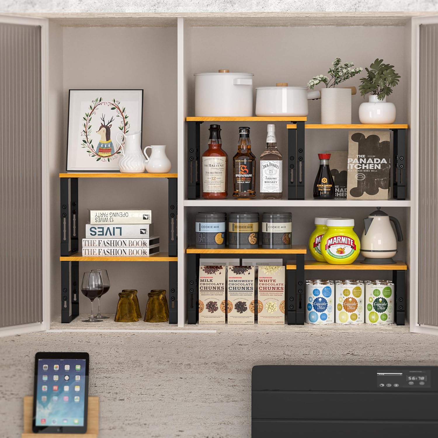 - ✅ From Spices to Tools: Versatility Redefined:Transform clutter into order! These shelves effortlessly organize spices, canned goods, tools, books, or decor. Use as a countertop spice rack, pet food station, or dining room centerpiece. Ideal for apartments, dorm rooms, RVs, or any space-conscious home.