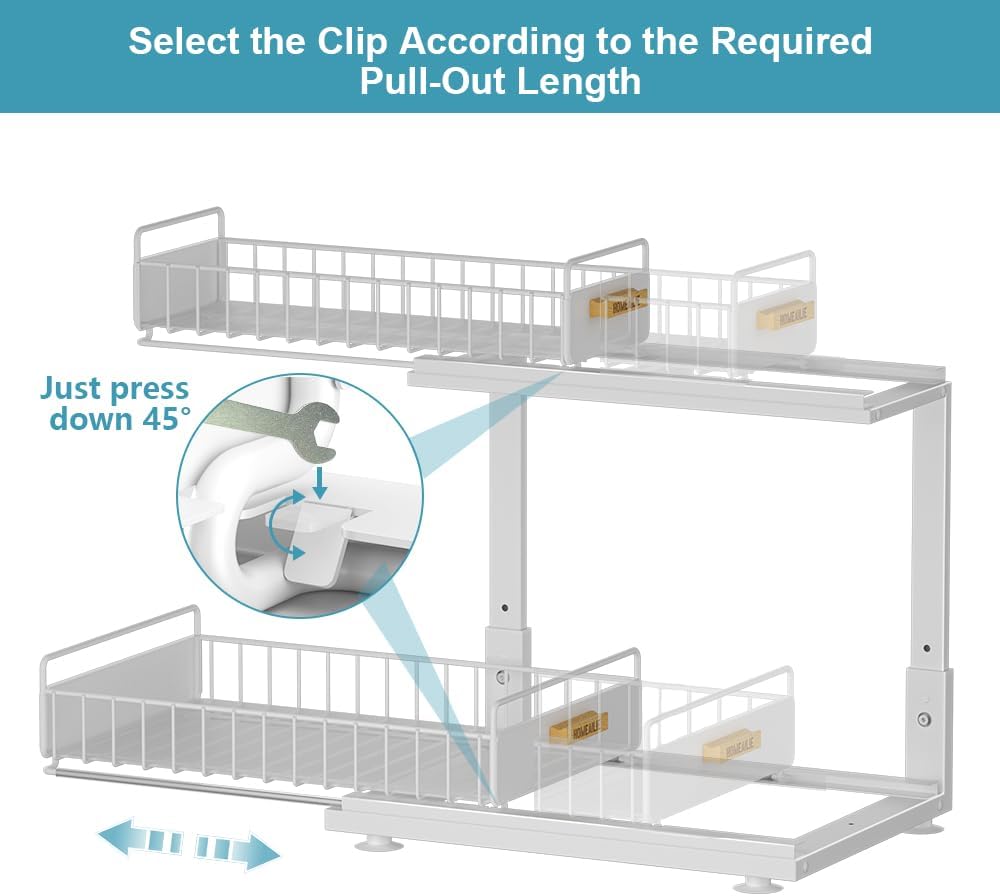 - Sturdy and Clean: Kitchen organizers and storage is made of high-quality metal, and powder coating process ensures that under sink organizers and storage is more stable. The hollow grid structure prevents residual water accumulation, the components are detachable and can be cleaned with water