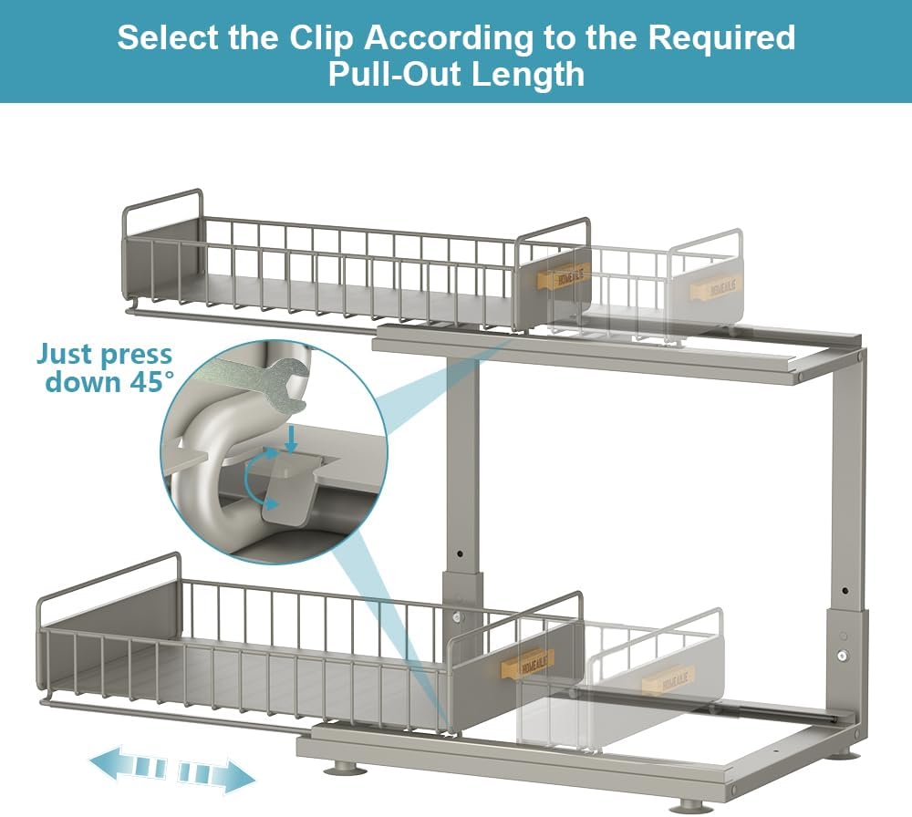 - Sturdy and Clean: Kitchen organizers and storage is made of high-quality metal, and powder coating process ensures that under sink organizers and storage is more stable. The hollow grid structure prevents residual water accumulation, the components are detachable and can be cleaned with water