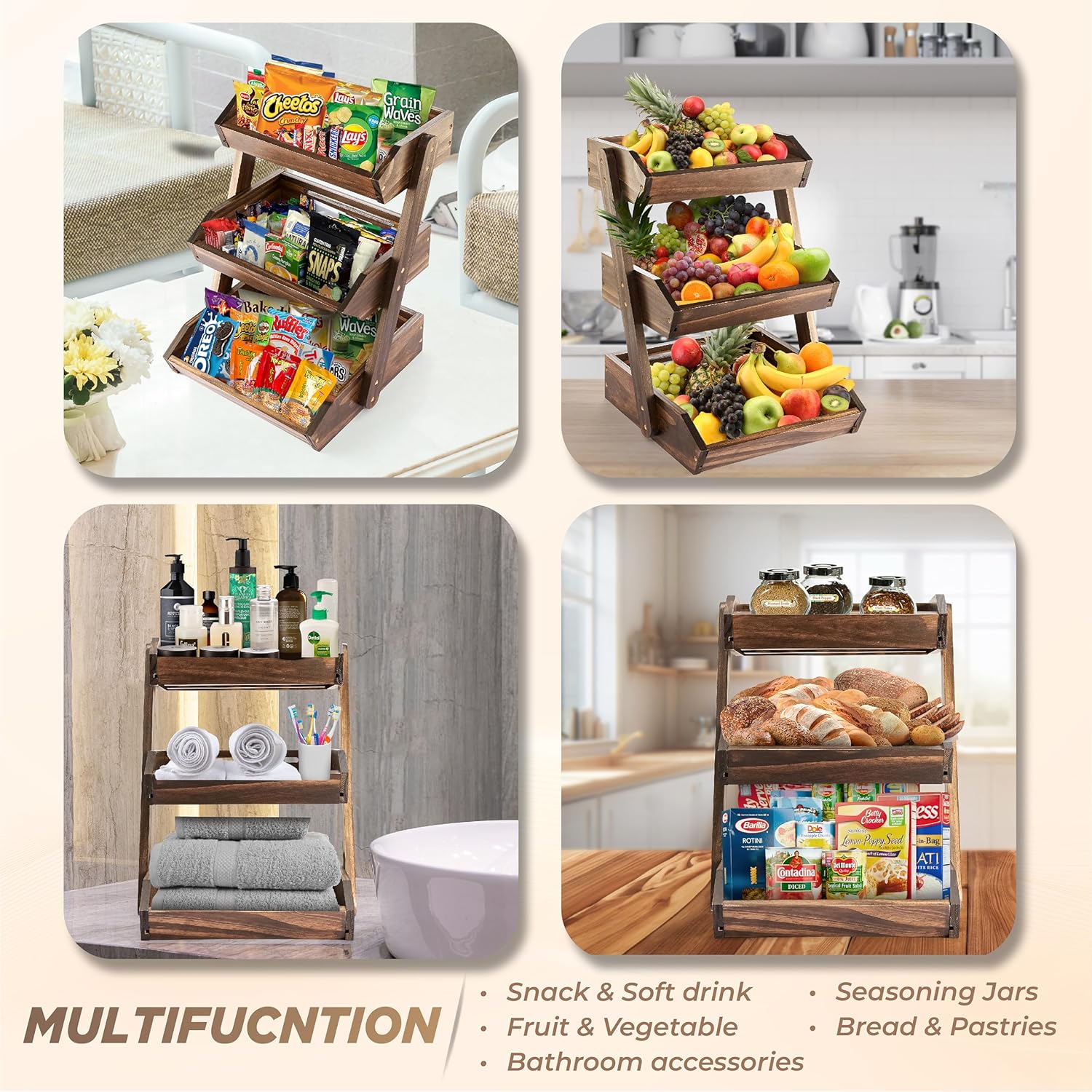 - ✔️ NECESSITY FOR ORGANIZATION: In addition to produce, snacks, bread, pastries, and seasonings, this 2-tier basket can also be used for bathroom toiletries, household products, pantry storage, and more!