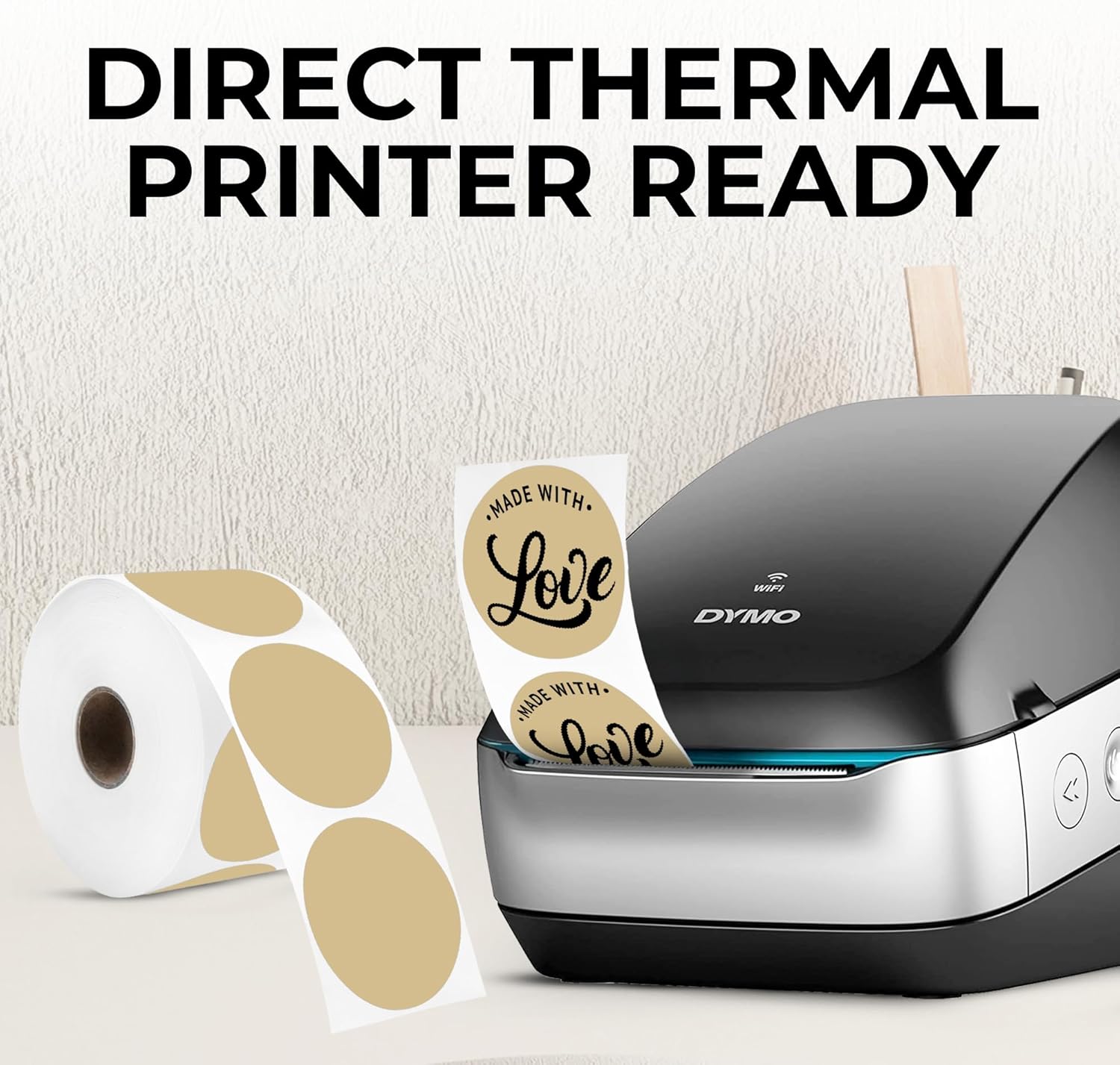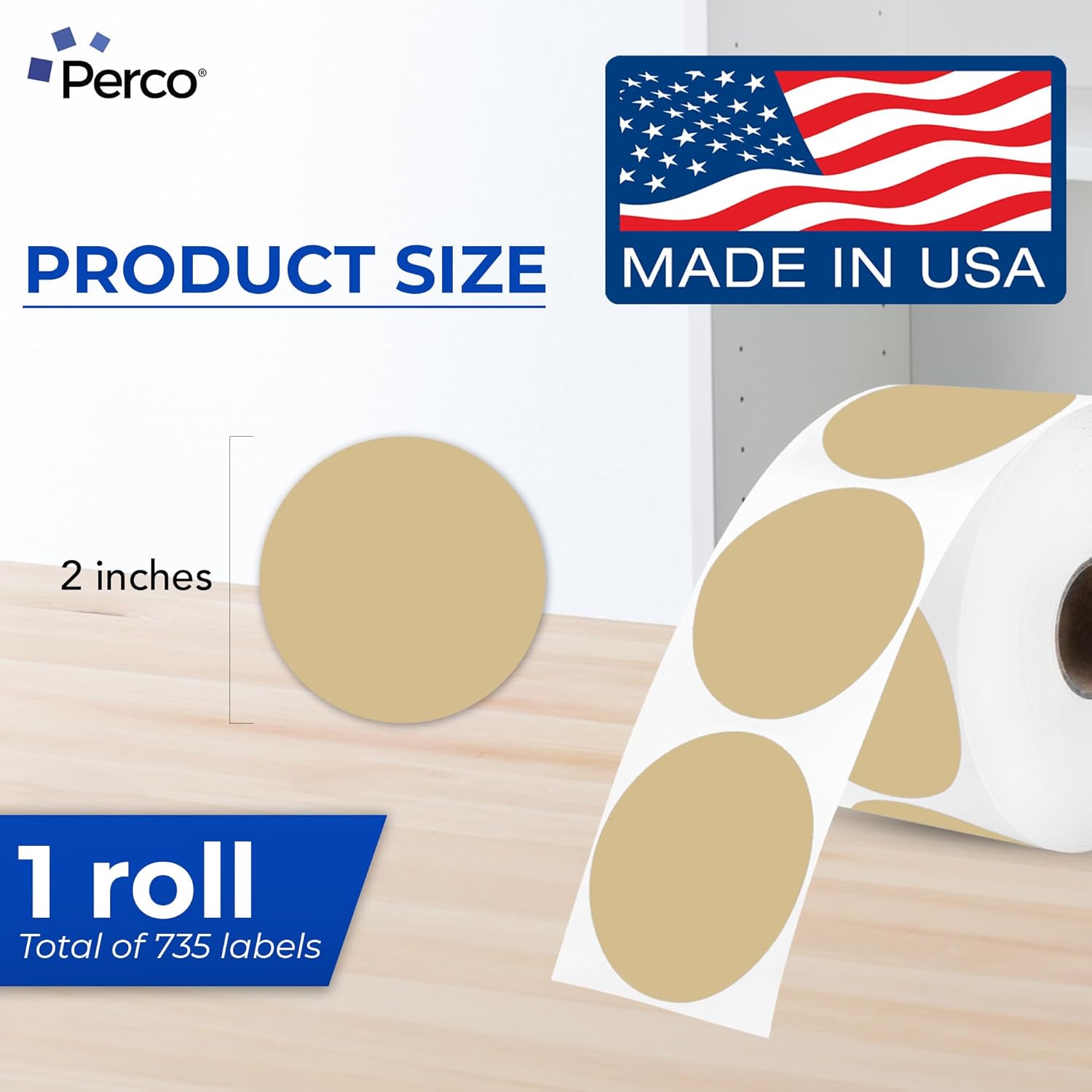 Perco Light Brown 2-inch Round Circle Thermal Sticker Labels - 735 Labels/Roll, Direct Thermal Printer Compatible, Permanent Adhesive, Vibrant Colors, Strong Hold, Perforated for Easy Use—Made in USA
