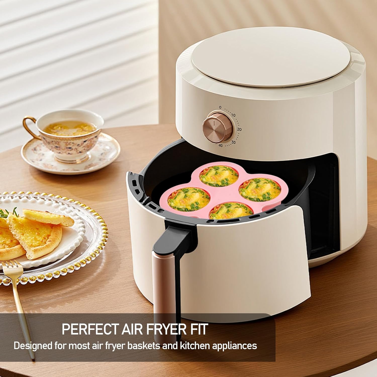 HUIKANGSHENG 2 Pack Air Fryer Egg Bite Molds, 4-Cup Silicone Mini Round Muffin Pans for Oven, Air Fryer & Pot, Reusable Non-Stick Baking Molds (Pink)