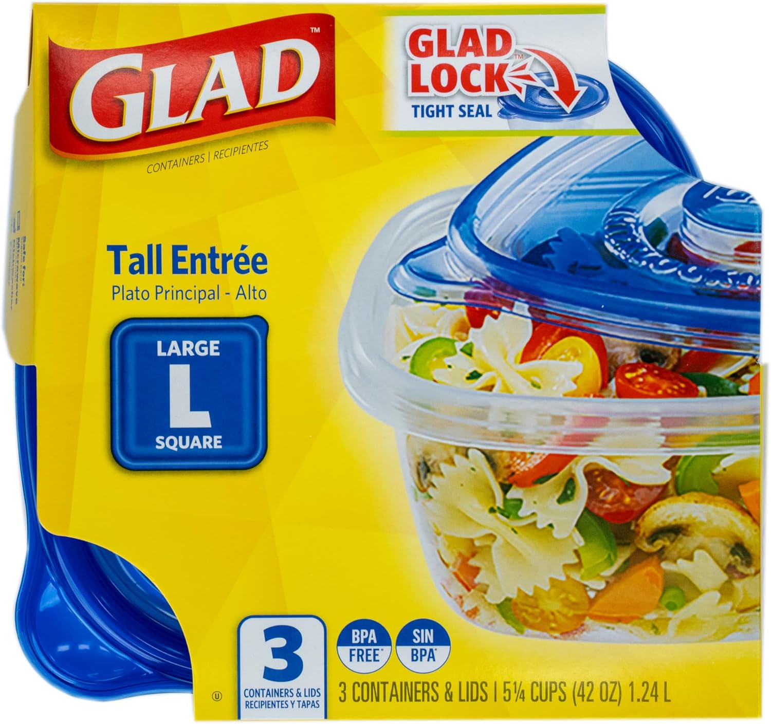 Glad GladWare Tall Entree Food Storage Containers - Large Square - Meal Container Holds up to 42 Ounces of Food - Lock Tight Seal, 3 Count - 6 Pack