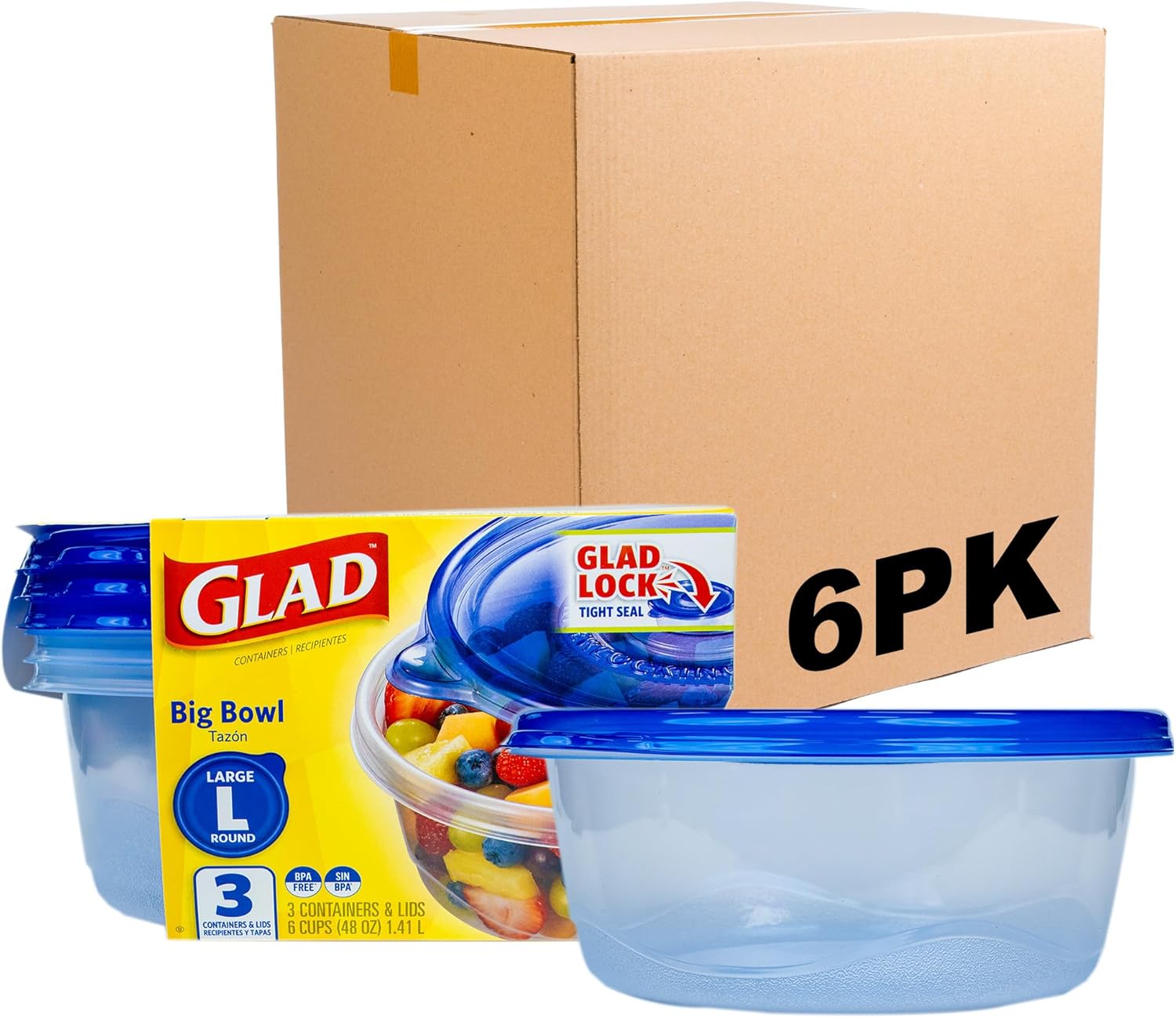 Glad GladWare Big Bowl Food Storage Containers, Large Round Bowl Holds 48 Ounces of Food Food Storage Containers for Everyday Use to Preserve Freshness, 3 Count - 6 Pack