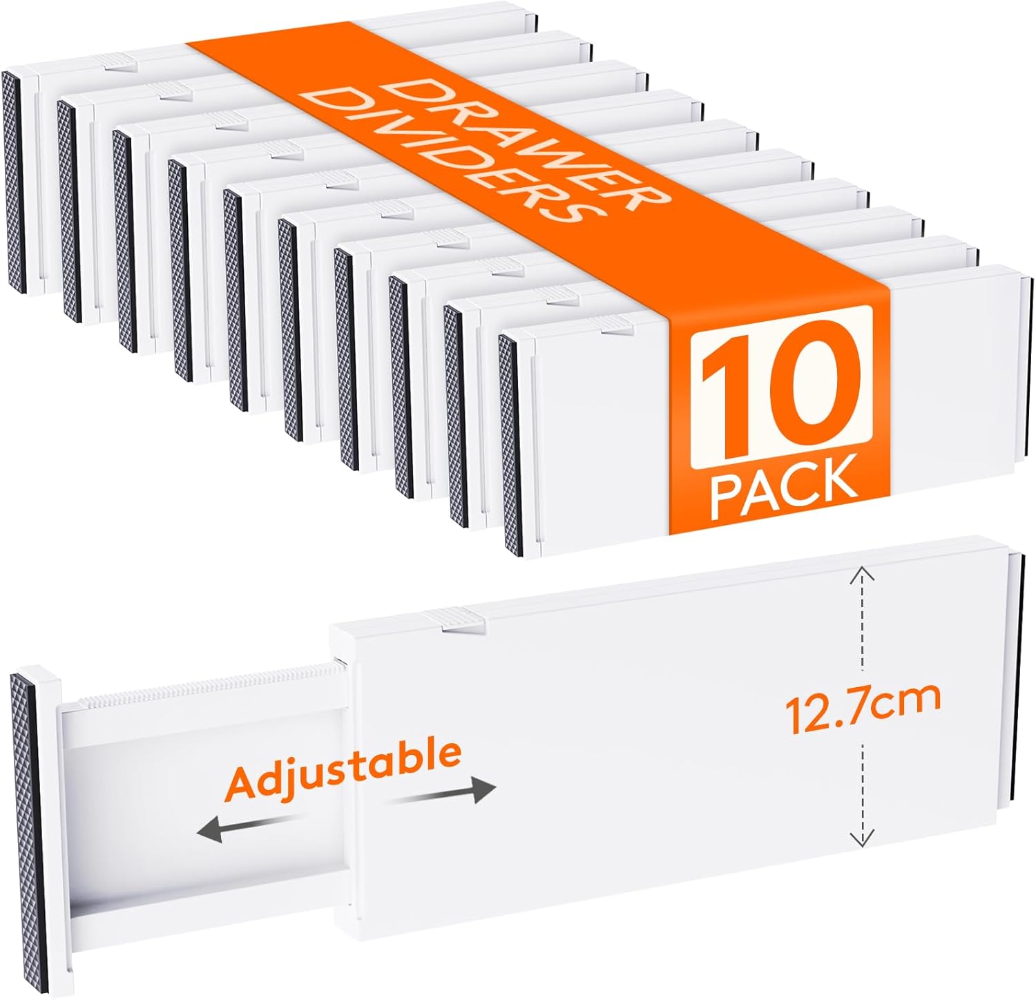 - Expandable & Adjustable: Easily fitting into most drawers and cabinets, our drawer divider measures 0.8 inches wide, 5 inches high, and can be adjusted in length from 13.5 to 22 inches ; The perfect solution for organizing items and keeping drawers tidy