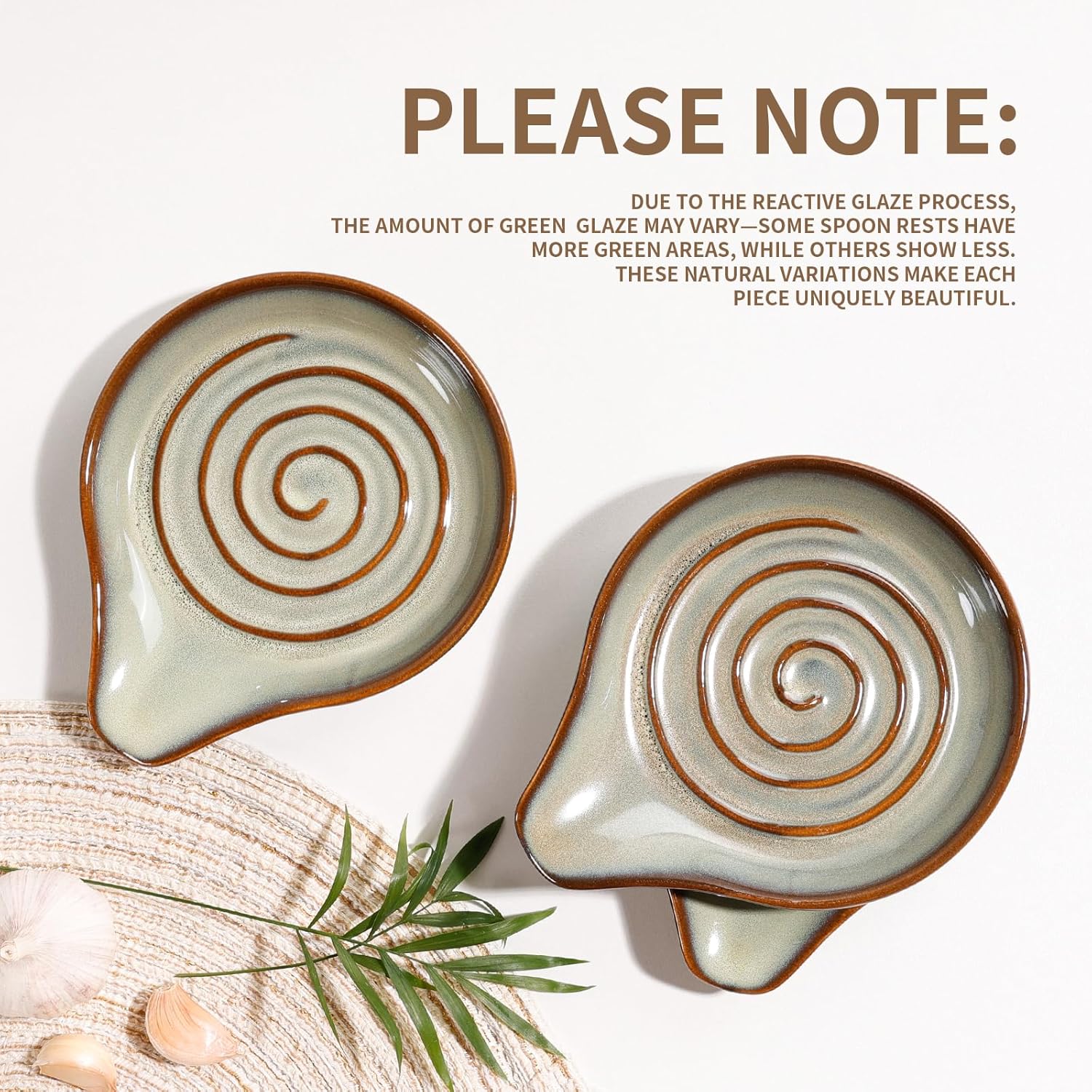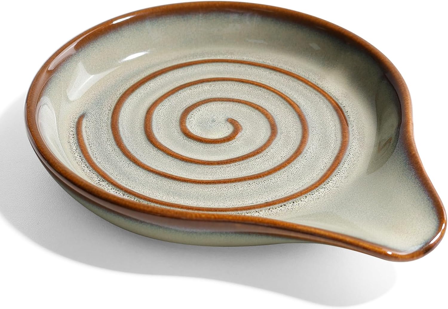 - Crafted for Beauty and Function: Made from food-safe, heat-resistant ceramic, this utensil rest features a swirl center that holds utensils in place while catching drips. The kiln-glazed finish adds a unique touch of style—perfect as a kitchen spoon rest that complements farmhouse, modern, or minimalist décor.