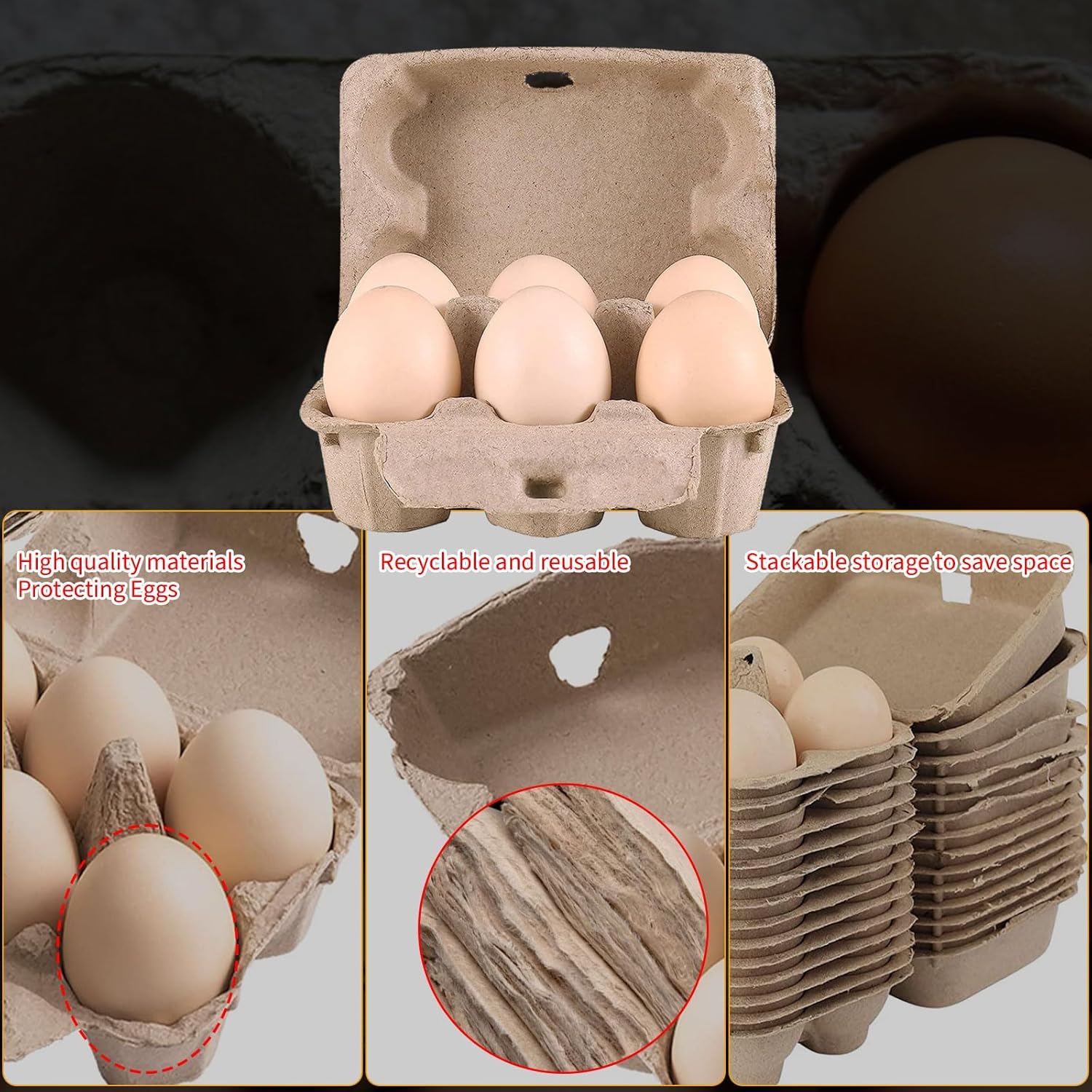50 Pack Empty Egg Cartons,6 Pulp Fiber Storage Containers for Kitchen, Farm, Picnic,Travel, Brown,Reusable