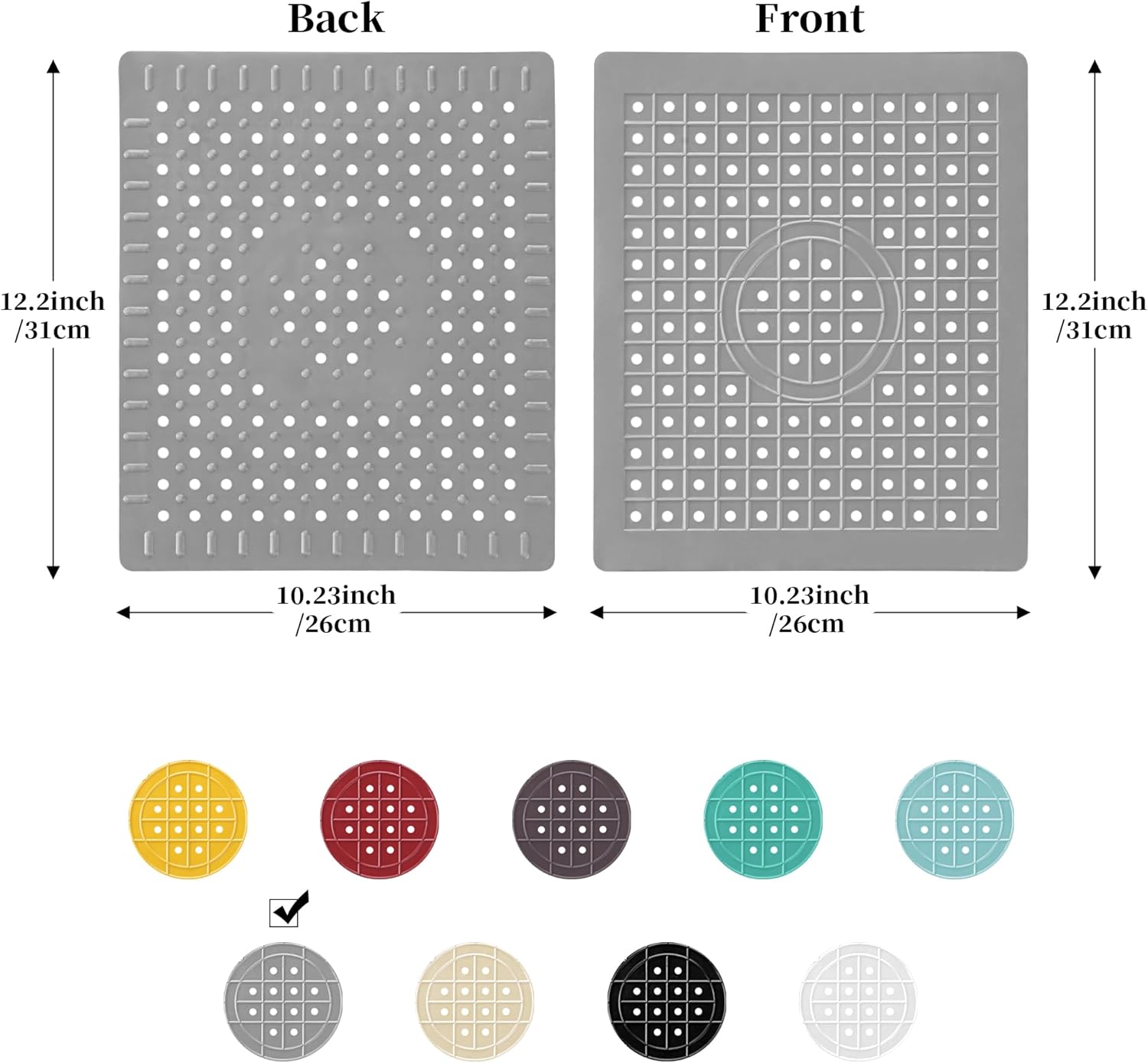 - 【Rubber Sink Drain Mat】 Made from durable rubber material, this sink mat is soft and resilient. Its flexibility allows to be folded and stored without leaving any creases, while its tear-resistant properties ensure it remains intact even with long-term use. Also, the kitchen sink mat features a special non-slip design on its surface, enabling it to firmly adhere to various countertops, providing stable support and preventing slipping.