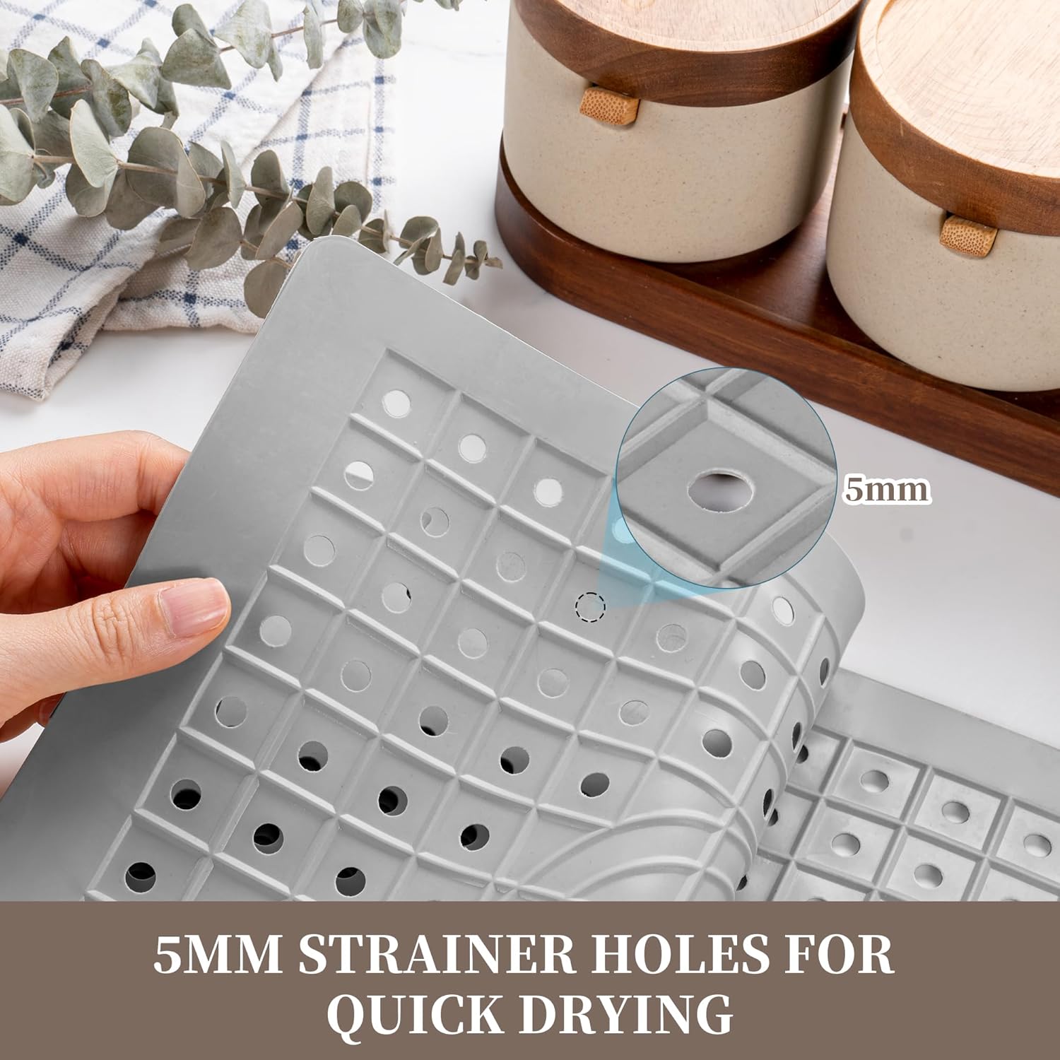 - 【Effective Water Drainage】 This sink mat features numerous 5mm drainage holes, ensuring excellent air circulation. These holes allow the mat to quickly drain surface water, effectively preventing puddles and keeping it dry. This design not only enhances convenience but also helps maintain the cleanliness of the mat.