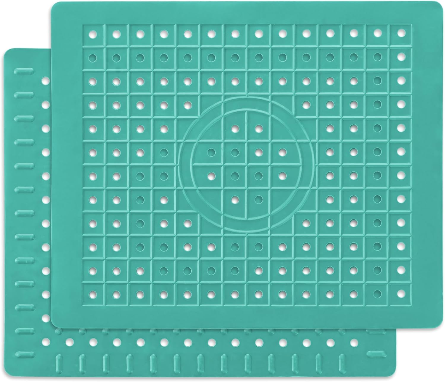 WILLKOMMEN Kitchen Sink Mat, 12" x 10" Rectangular Sink Protector Pad, Fast-Draining Grid Design Liner, Dish Drying Mat 2 Pack Mint Green