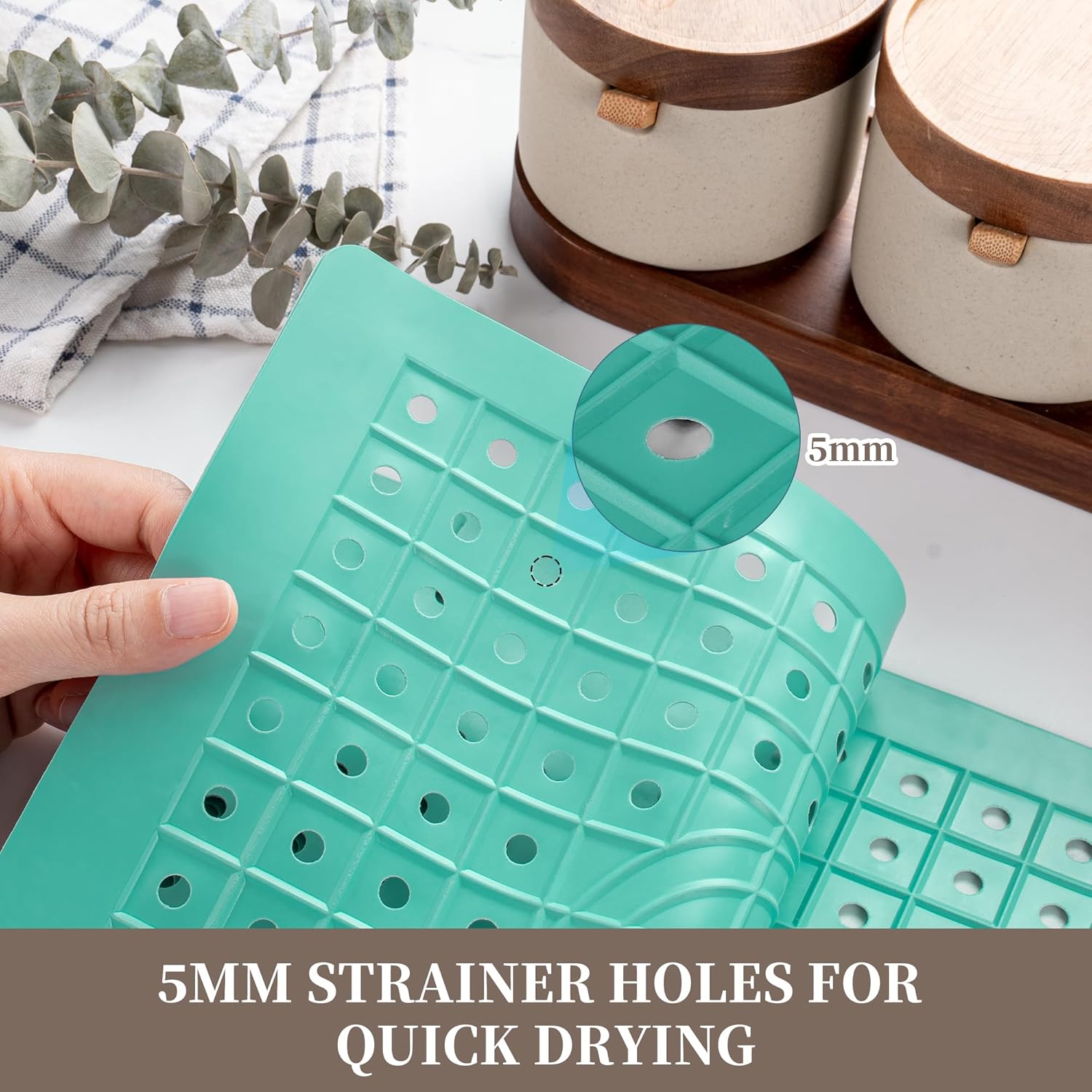 - 【Effective Water Drainage】 This sink mat features numerous 5mm drainage holes, ensuring excellent air circulation. These holes allow the mat to quickly drain surface water, effectively preventing puddles and keeping it dry. This design not only enhances convenience but also helps maintain the cleanliness of the mat.