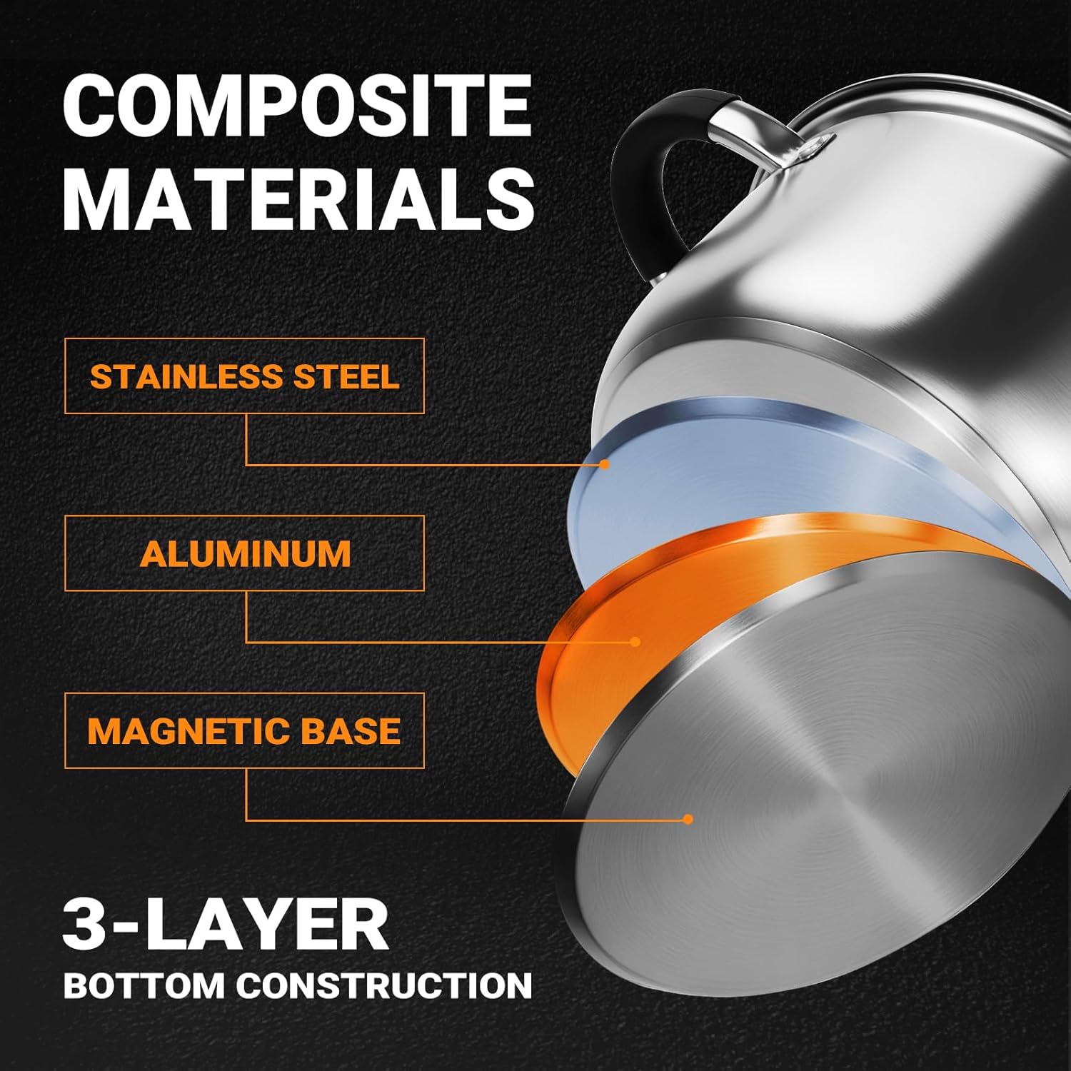 - 3 Layers Bottom: The Kirecoo steamer for cooking is an essential piece of kitchen cookware, boasting sturdy construction with a 3-layer thickened base made of stainless steel, aluminum, and a magnetic base. It heats quickly and distributes heat evenly. This vegetable steamer features high temperature and corrosion resistance, promising a long service life without easy deformation. The steamer pot is compatible with various stovetops, including gas, electric, ceramic, halogen, and induction.