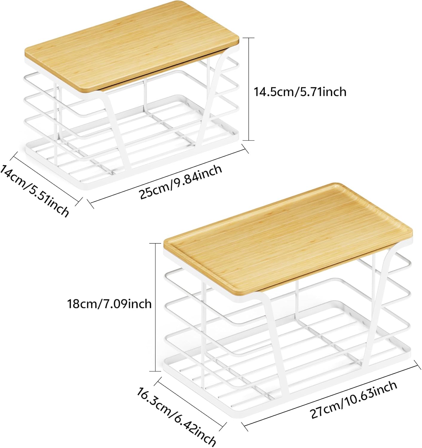 2 Pack Stackable Laundry Room Organization and Storage, Laundry Room Decor and Accessories, Trash Bag Holder with Bamboo Top and Garbage Bag Dispenser, White