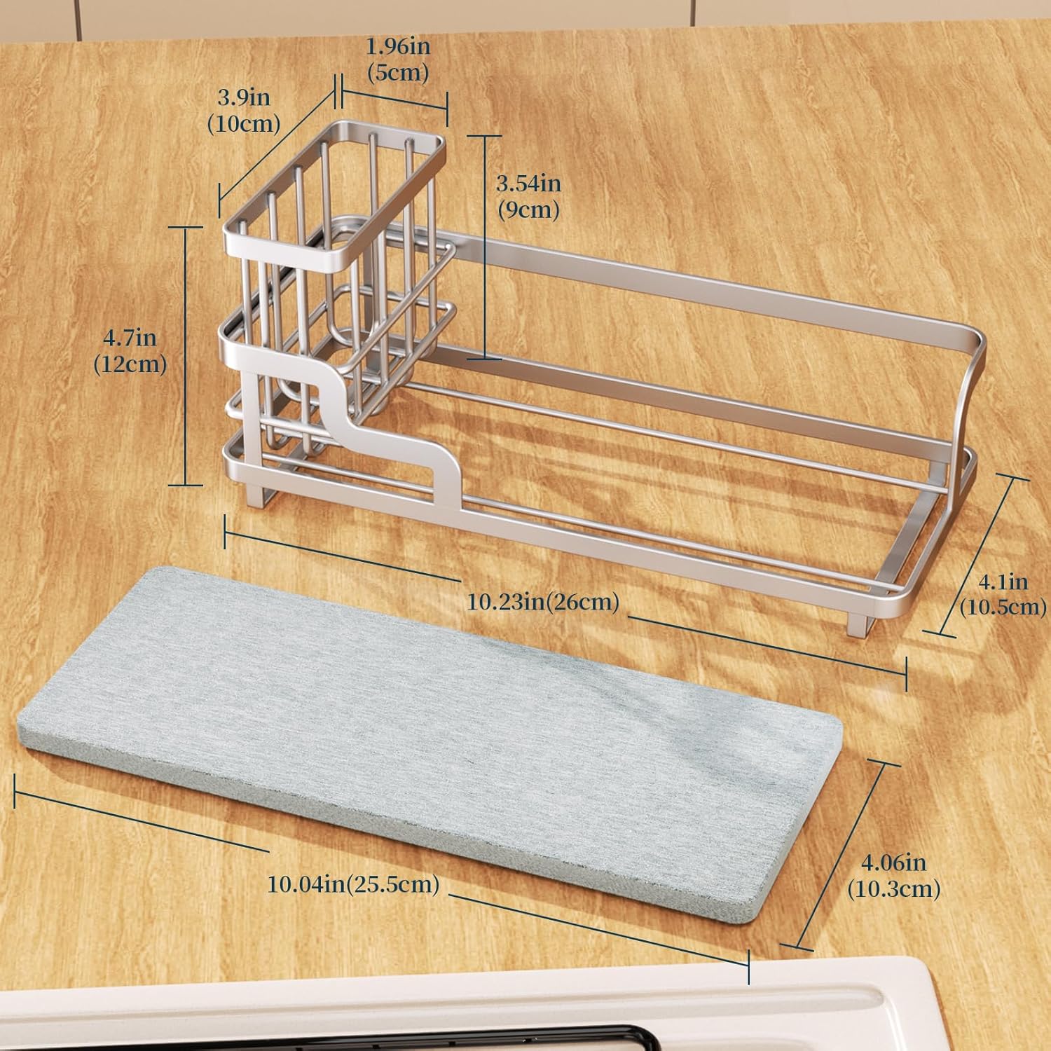 - [Replaceable Diatomite Base]: The diatomite base of the kitchen sink caddy is replaceable. If needed, the base can be easily swapped, saving replacement costs and extending product life