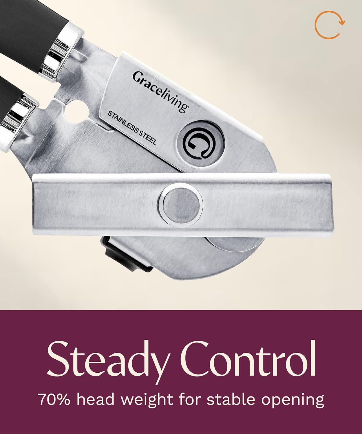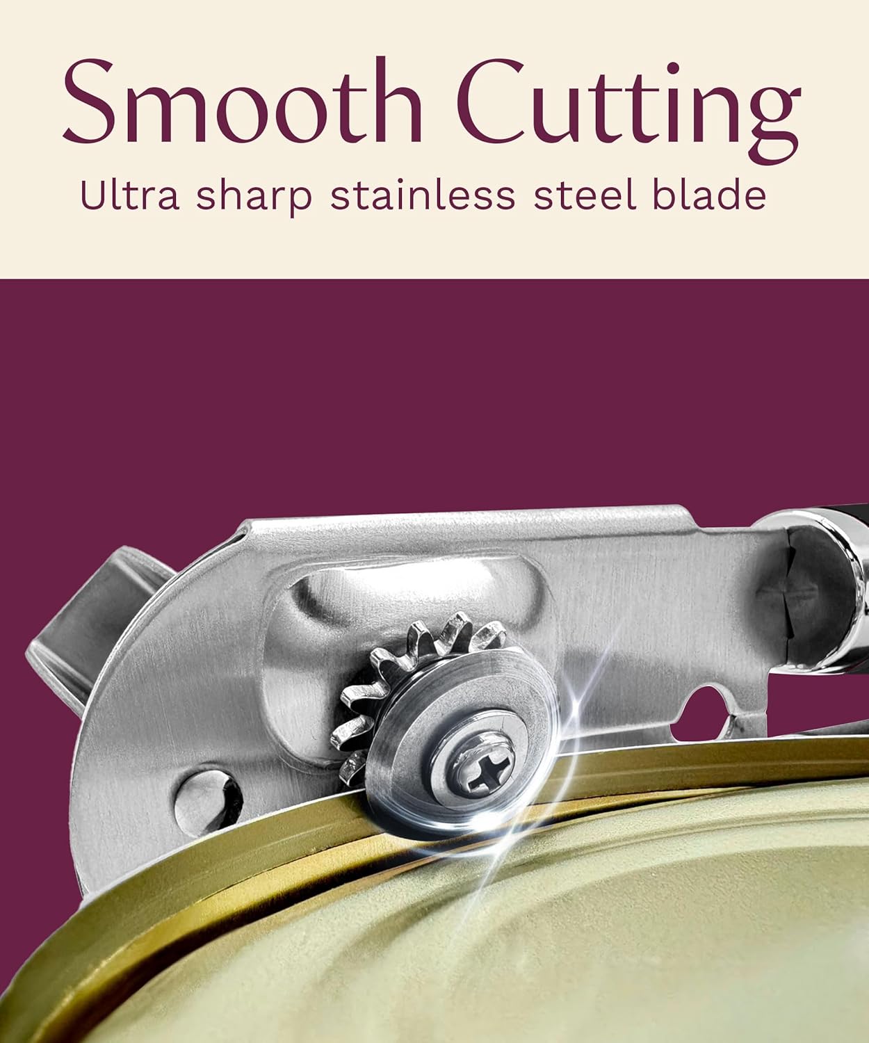 - 【INOXCORE Rust-Proof Stainless Steel Can Opener & Precision Gears with Ultra-Sharp Blade】 Constructed with reinforced INOXCORE stainless steel components, rust-proof finish, and precision-aligned gears, this premium kitchen tool houses a razor-sharp, high-carbon blade for clean, jag-free cuts every time. Its solid weight and brushed exterior delivers lasting sharpness and a premium feel.