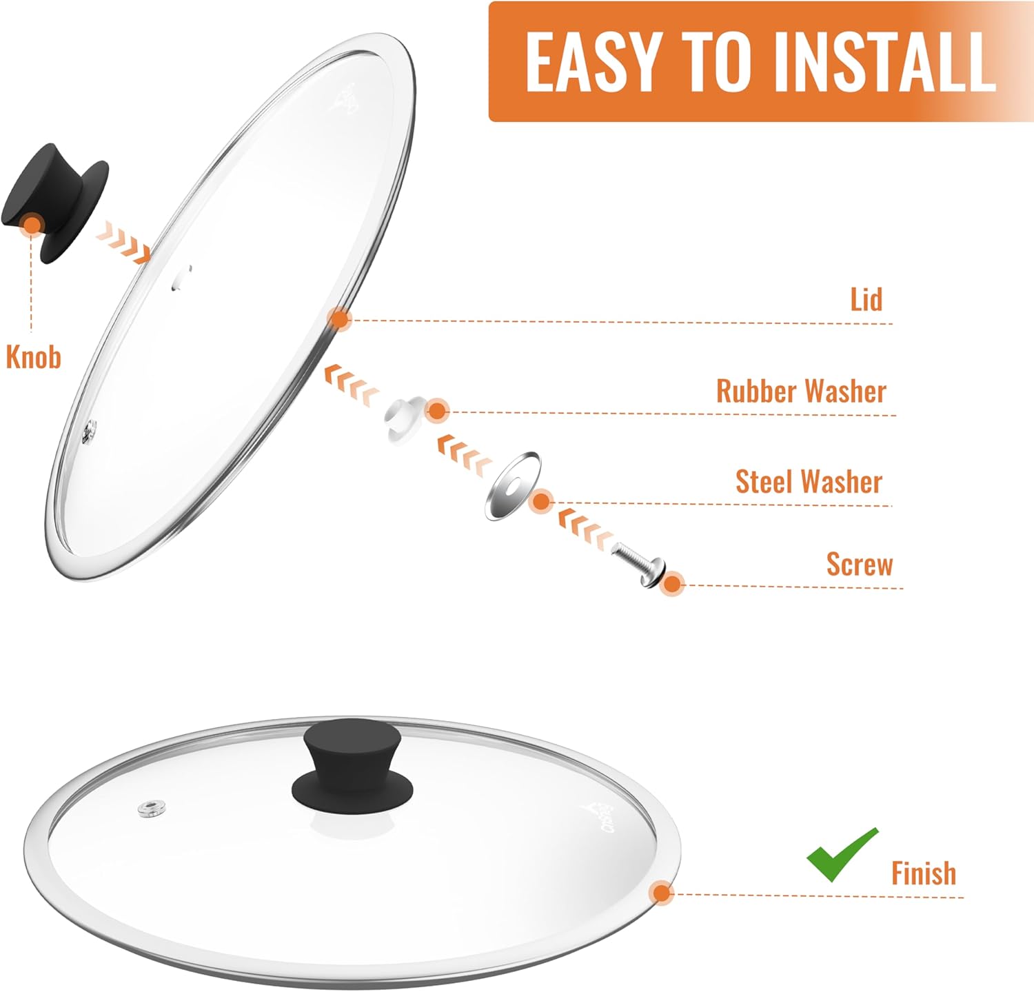 - STRONG TEMPERED GLASS: With premium high-definition tempered glass, this durable glass lid for pots and pans ensures even heat distribution and withstands high temperatures. Perfect for pots and pans, it offers a clear view of your cooking without lifting.