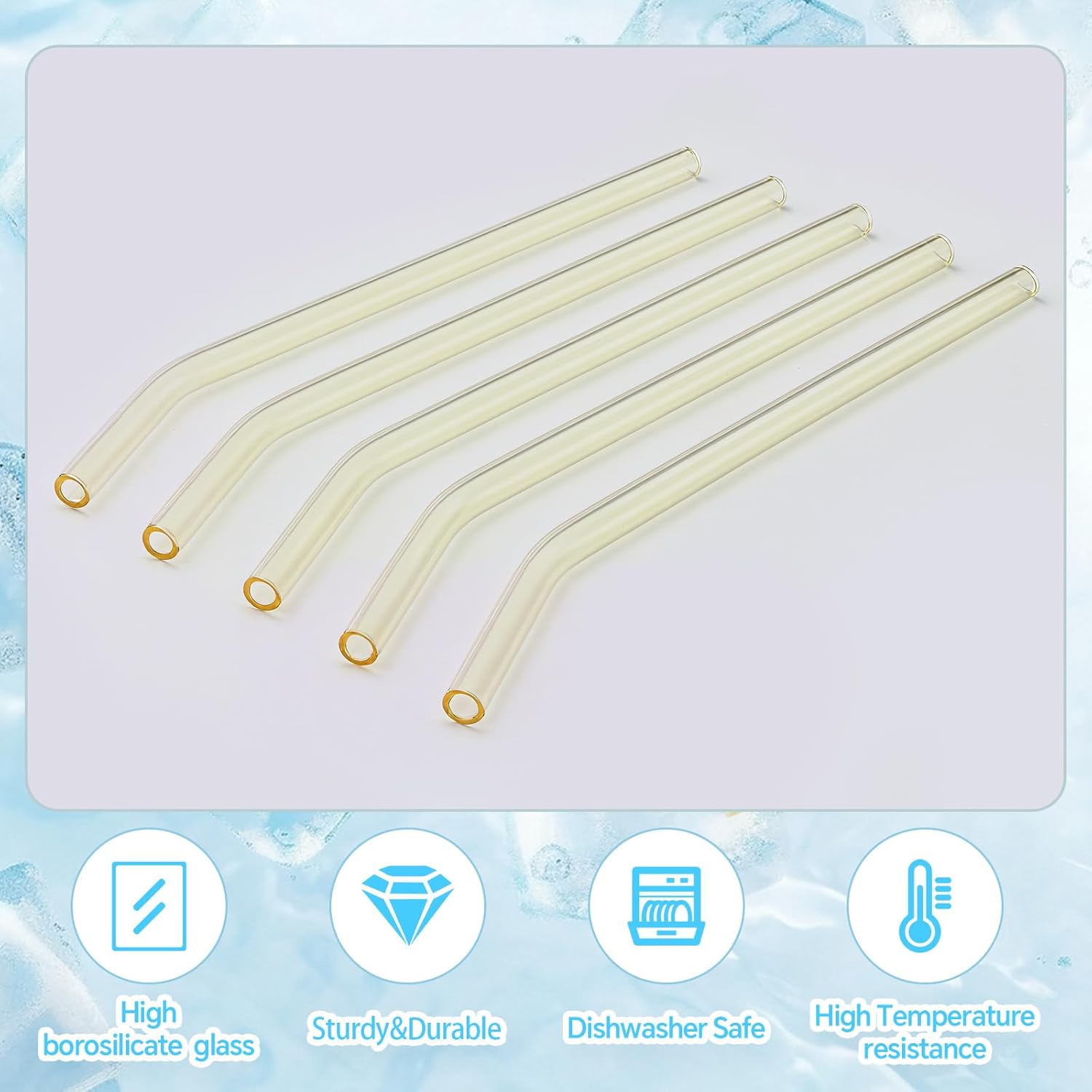 12 Pcs Reusable Glass Straws 8"x 8 mm Bent Glass Drinking Straws with Cleaning Brush for Tea, Smoothies, Milkshakes, Juices,Beverages.(yellow)