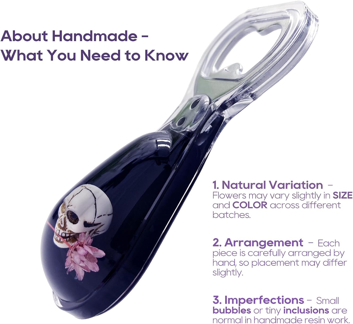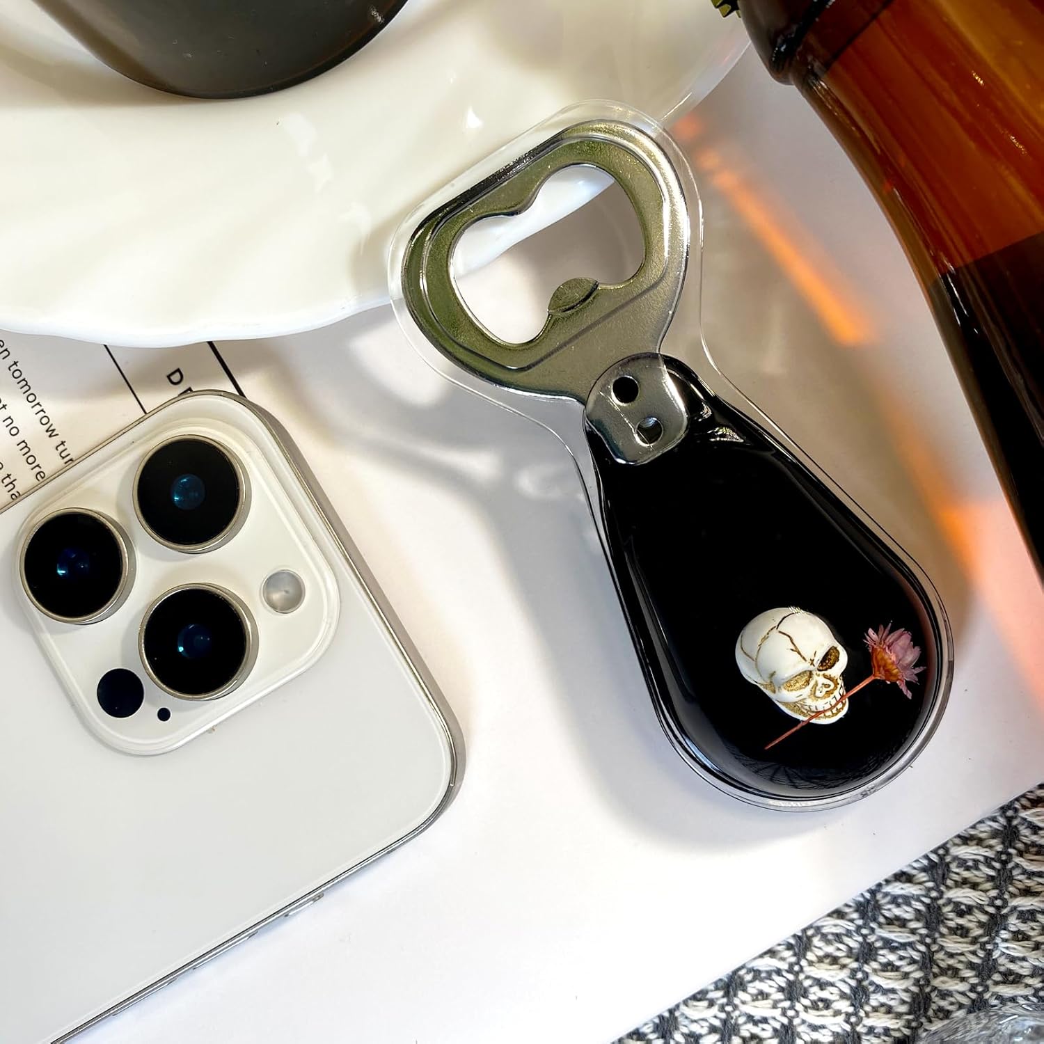 Halloween Ghost Skull Decor, Magnetic Bottle Opener, Original Design Skull Biting Flower in Black Resin – Strong Magnet for Fridge – Gothic Halloween Gifts - Black