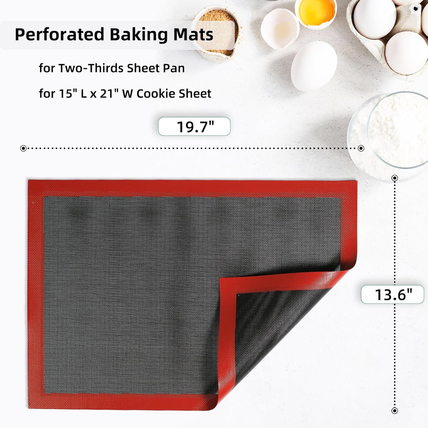 Perforated Silicone Baking Mat for Two-Thirds Size Pan, Non-Stick Eclair Baking Mat for 15x21 Big Sheet, Reusable Cookie Sheet Liner for Two Thirds Sheet Pans for Sugar Cookies 1 PCS