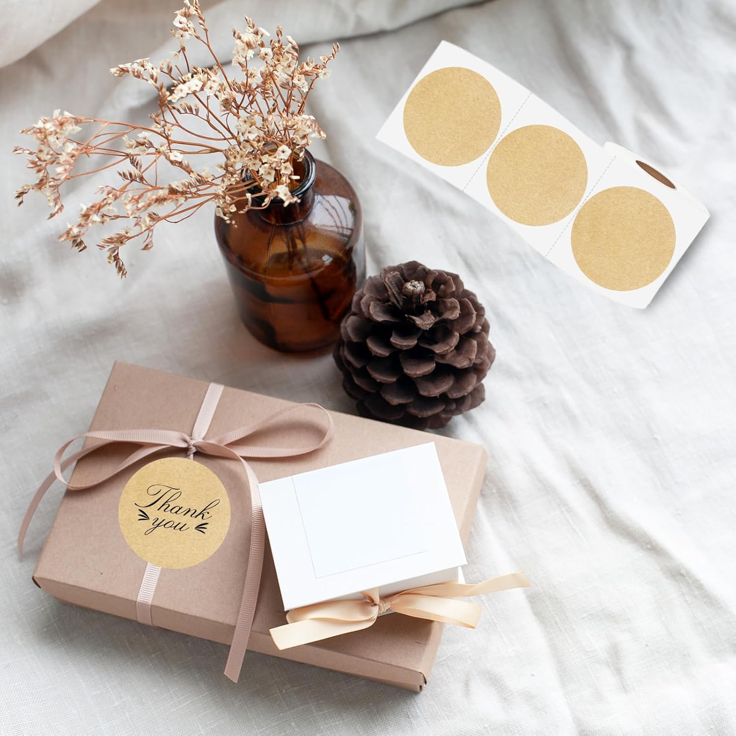 Thermal Label,3 Inch Kraft Paper Round Thermal Printer Sticker,Self-Adhesive Round Direct Thermal Labels,Thermal Stickers for DIY Logo Design,Name Tag (300 Labels/1 Roll)
