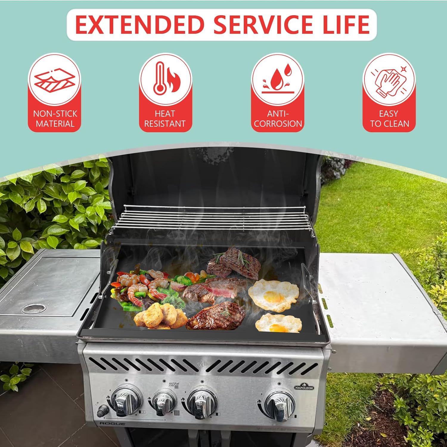 - Grill replacement parts for Napoleon models:RXT425SBPMK-1-A,RXT425SIB-1,RXT425SIBNSS,RXT425SIBNK-1,RXT425SIBNSS-1,RXT425SIBPSS,RXT425SIBPK-1,RXT425SIBPSS-1,ROGUE 425, ROGUE 425SB,ROGUE SE425RSIB,ROGUE XT425,ROGUE XT425SIB, SERSE425; Measures 22.8''L X 17.7''W, Your order includes 1 griddle insert, 2 carrying handles and 2 silicone gloves; Please confirm the size and model you need before placing your order!