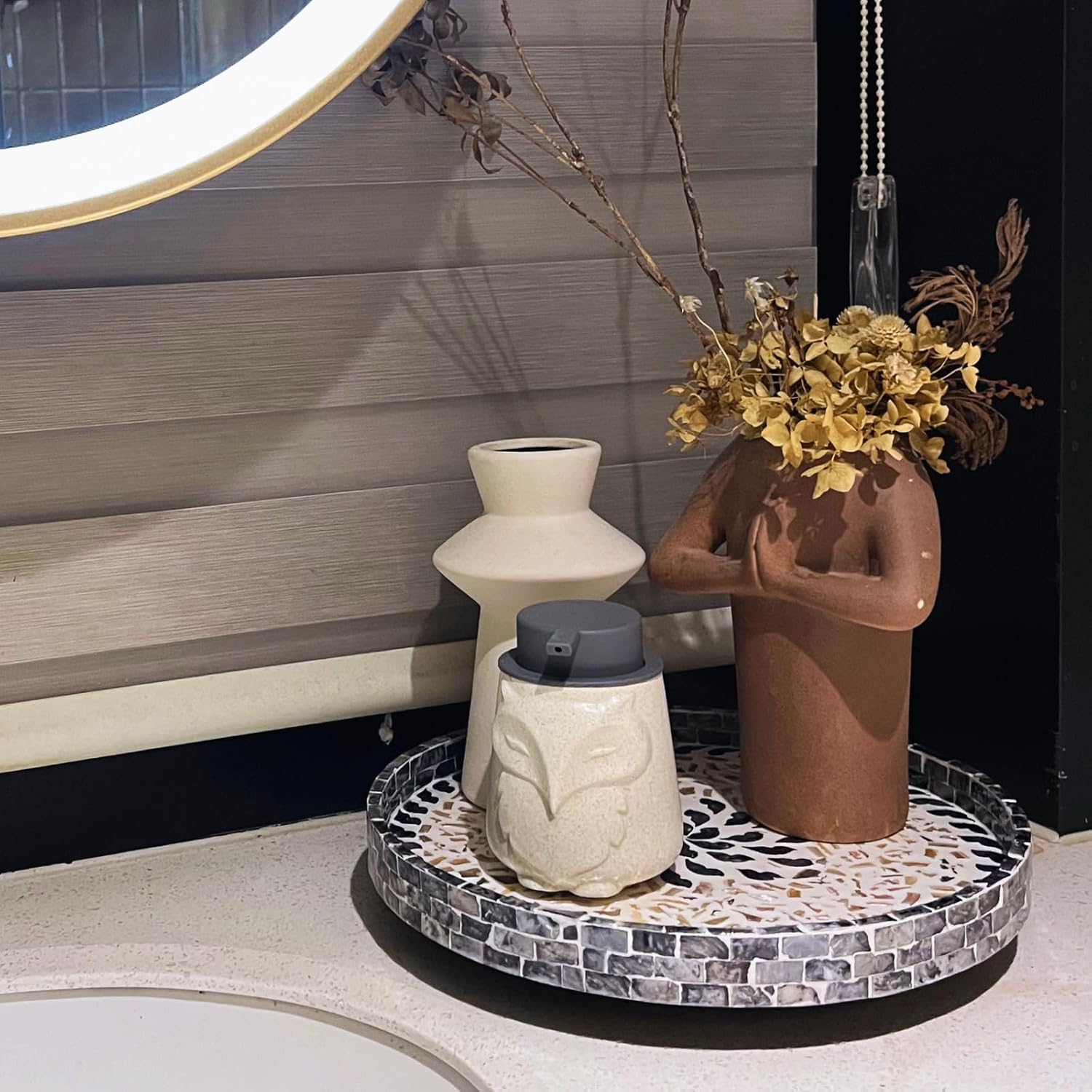 - Effortless 360° Rotation: Enjoy smooth, silent spinning with our turntable stand, keeping your spices, syrups, and accessories within reach. Whether you're using it as a vanity tray for your skin care products, or kitchen counter organizer for salt, pepper and olive oil, this circular Lazy Susan keeps your space organized and clutter-free.