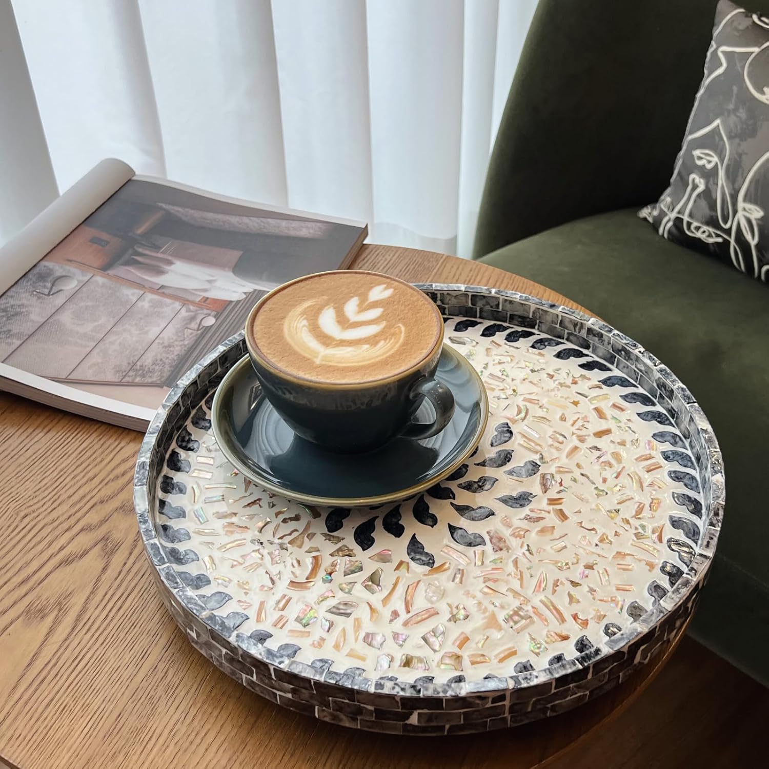 - A Decorative Masterpiece: The intricate mother of pearl inlays create a striking, elegant pattern that makes this Lazy Susan an eye-catching dining table centerpiece, perfect for adding style to your table top, dresser top, or even your outdoor patio table setting.