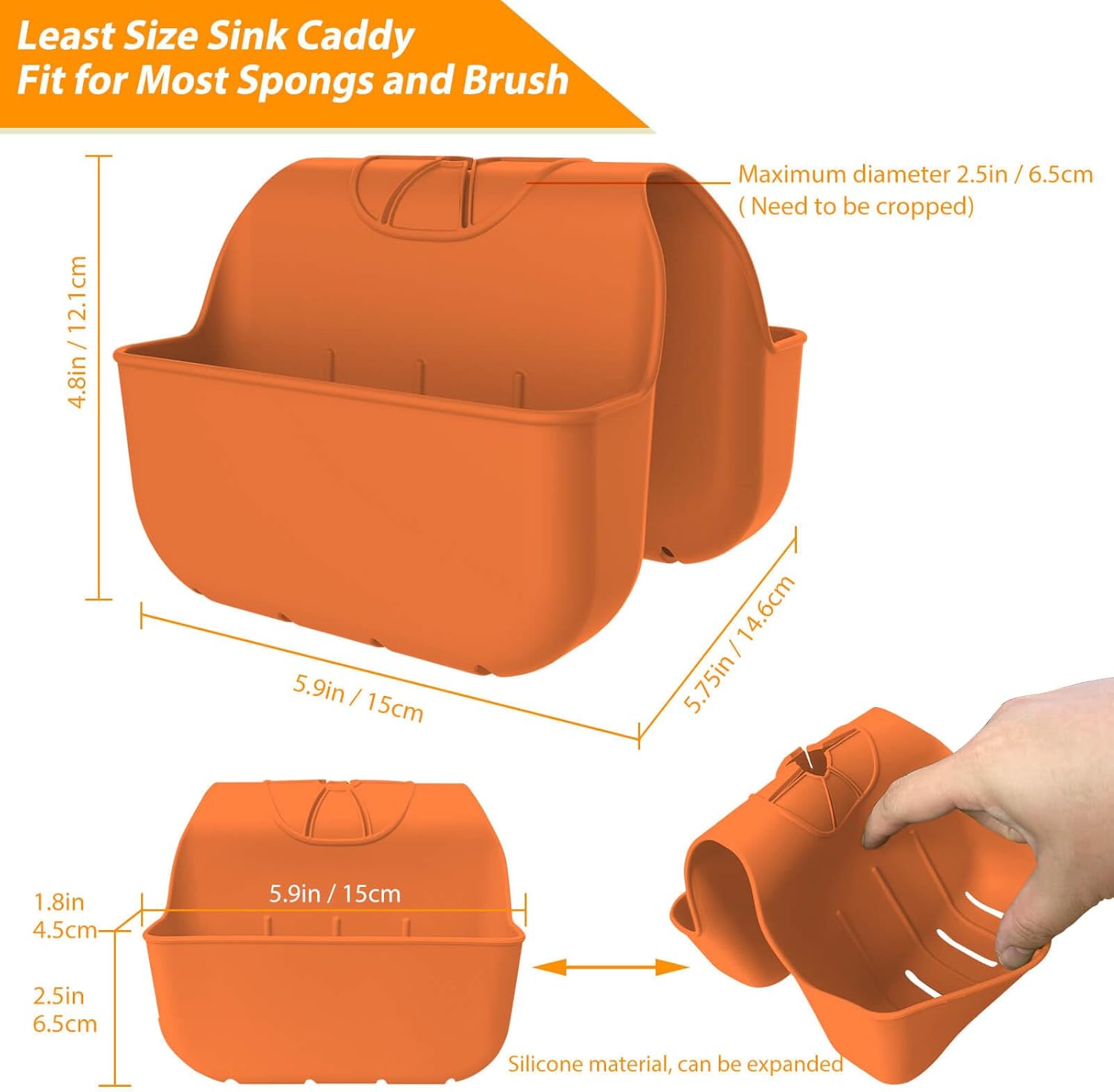 Sponge Holder for Kitchen Sink, Silicone Sink Saddle Caddy Organizer Rack, Sponges Holder Over Faucet, Hanging Kitchen Organizer Accessories Rack Basket Orange