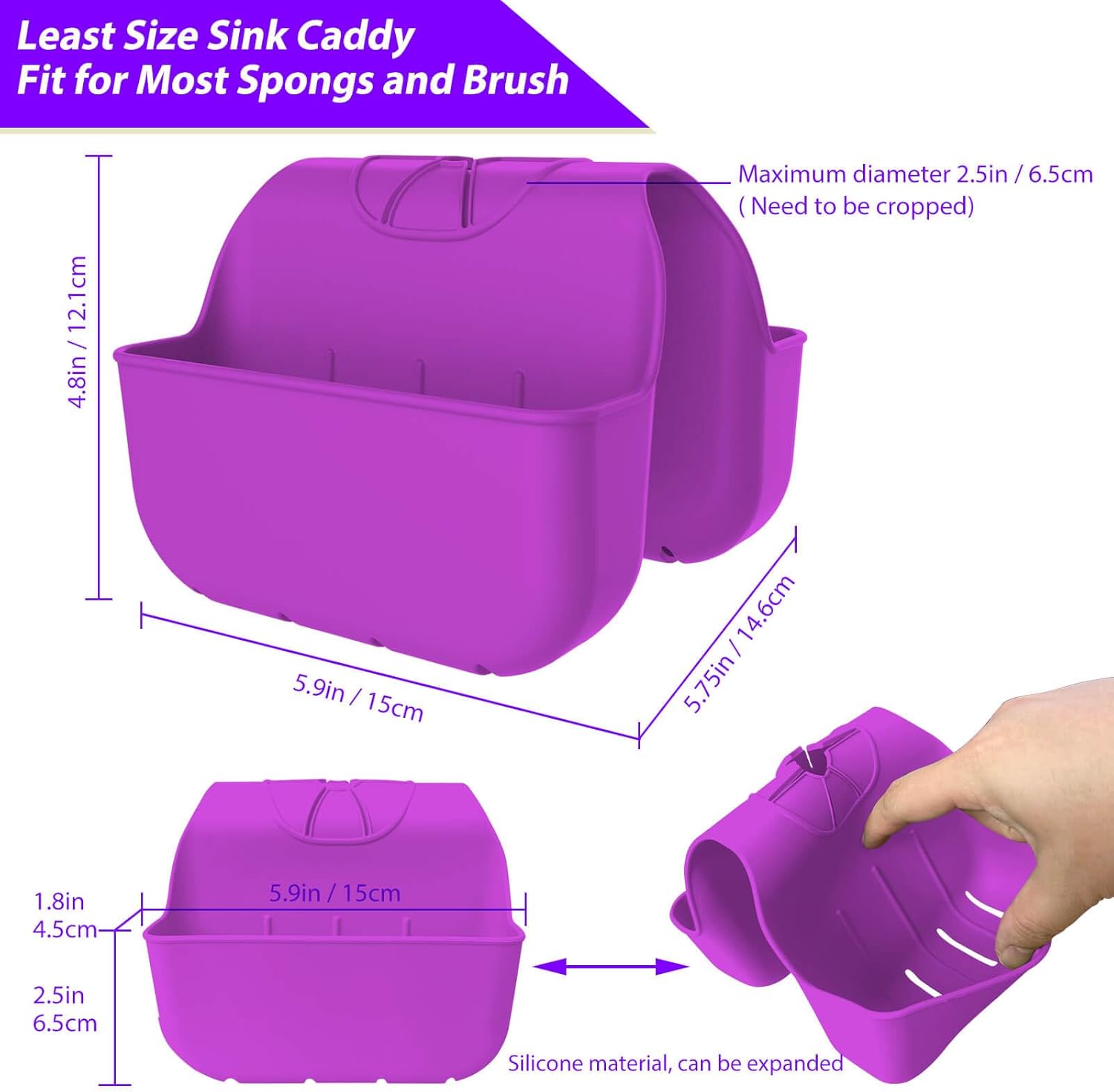Sponge Holder for Kitchen Sink, Silicone Sink Saddle Caddy Organizer Rack, Sponges Holder Over Faucet, Hanging Kitchen Organizer Accessories Rack Basket Purple