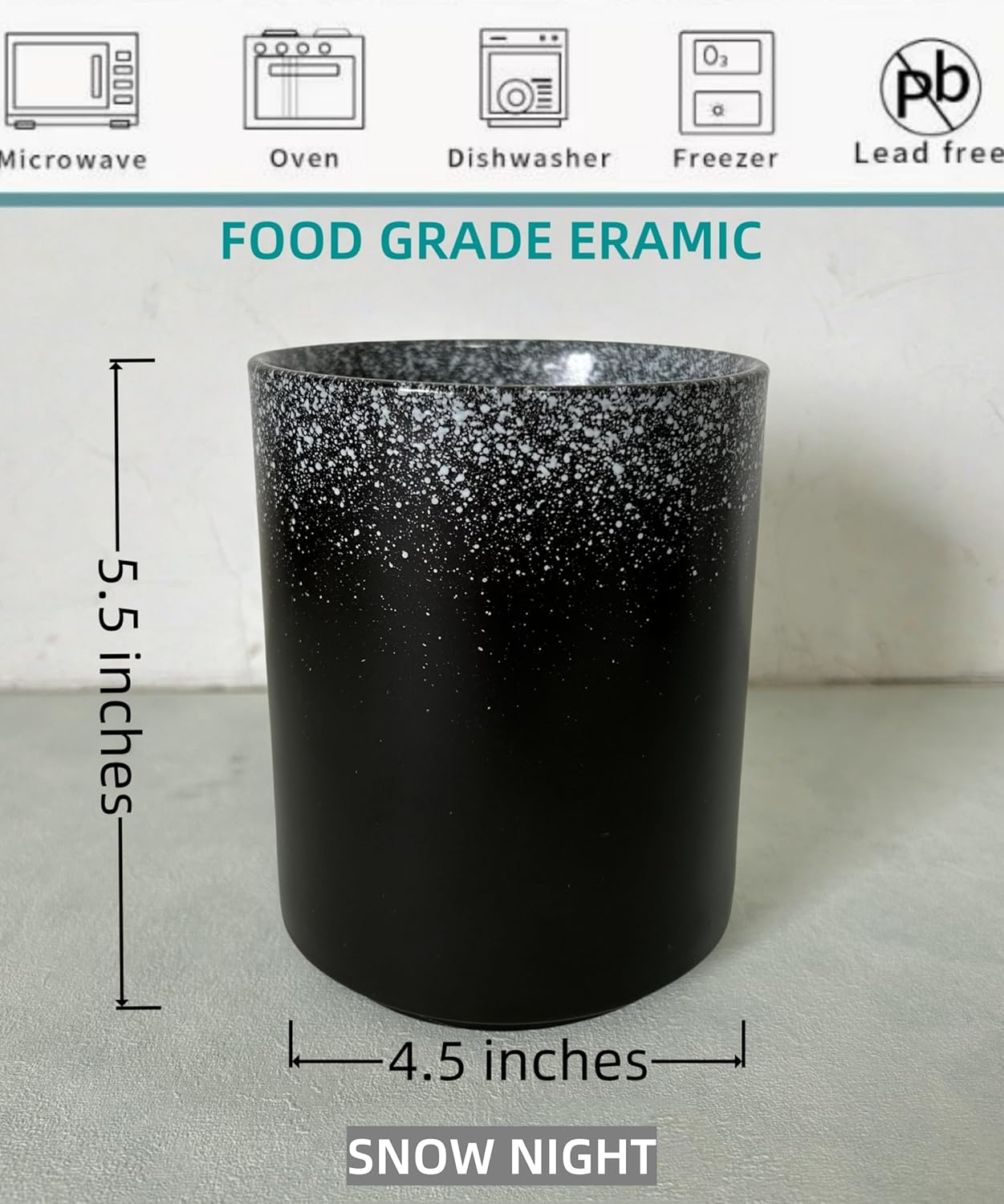 Medium Stoneware Kitchen Utensil Holder for Kitchen Counter Short Cooking Utensil Holder for Countertop Spatula Holder Small Utensil Crock Cutlery Holder Silverware Caddy Flower Vase (Snow Night)