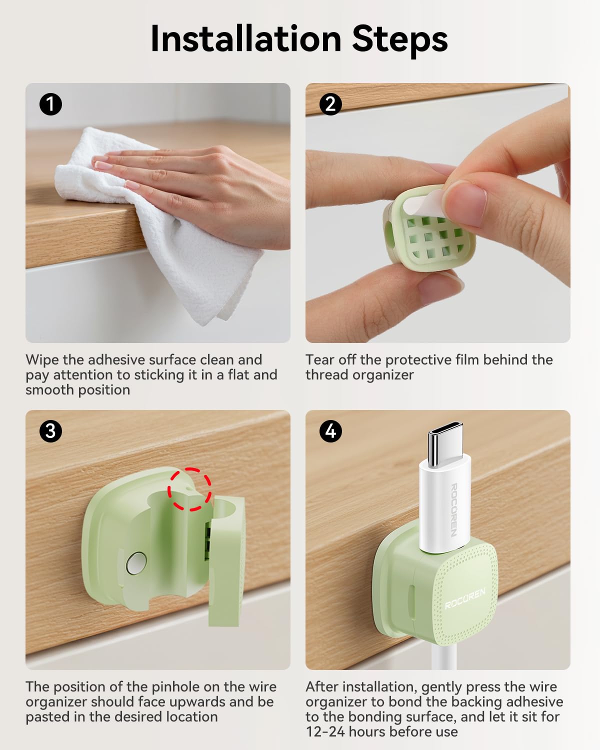 - High-Strength ABS Material:Rocoren magnetic cable management Passed 2000 gravity cycle tests (Lab-Tested Durability), the durability of the rubber material is 200% improved, and it is impact-resistant and corrosion-resistant. Installation tips: Please use alcohol cotton to clean the surface before use, press for 30 seconds to activate the glue, and let it stand for 12-24 hours to achieve the best viscosity (Maximum Adhesion).