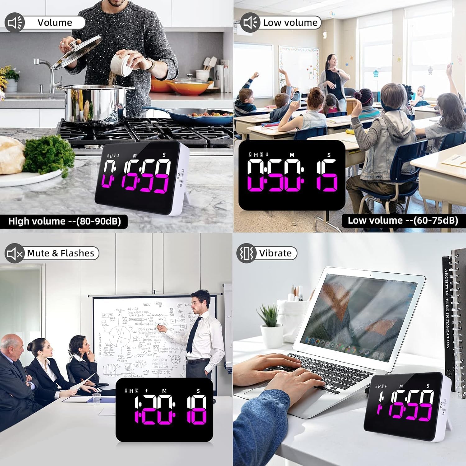 Kitchen Digital Timer, Count Down Up, Rechargeable, Vibration Mode Adjustable Volume and Brightness LED Display, Time Management Cook, Desk, Kids Adults Study Teaching, Kitchen Gadgets