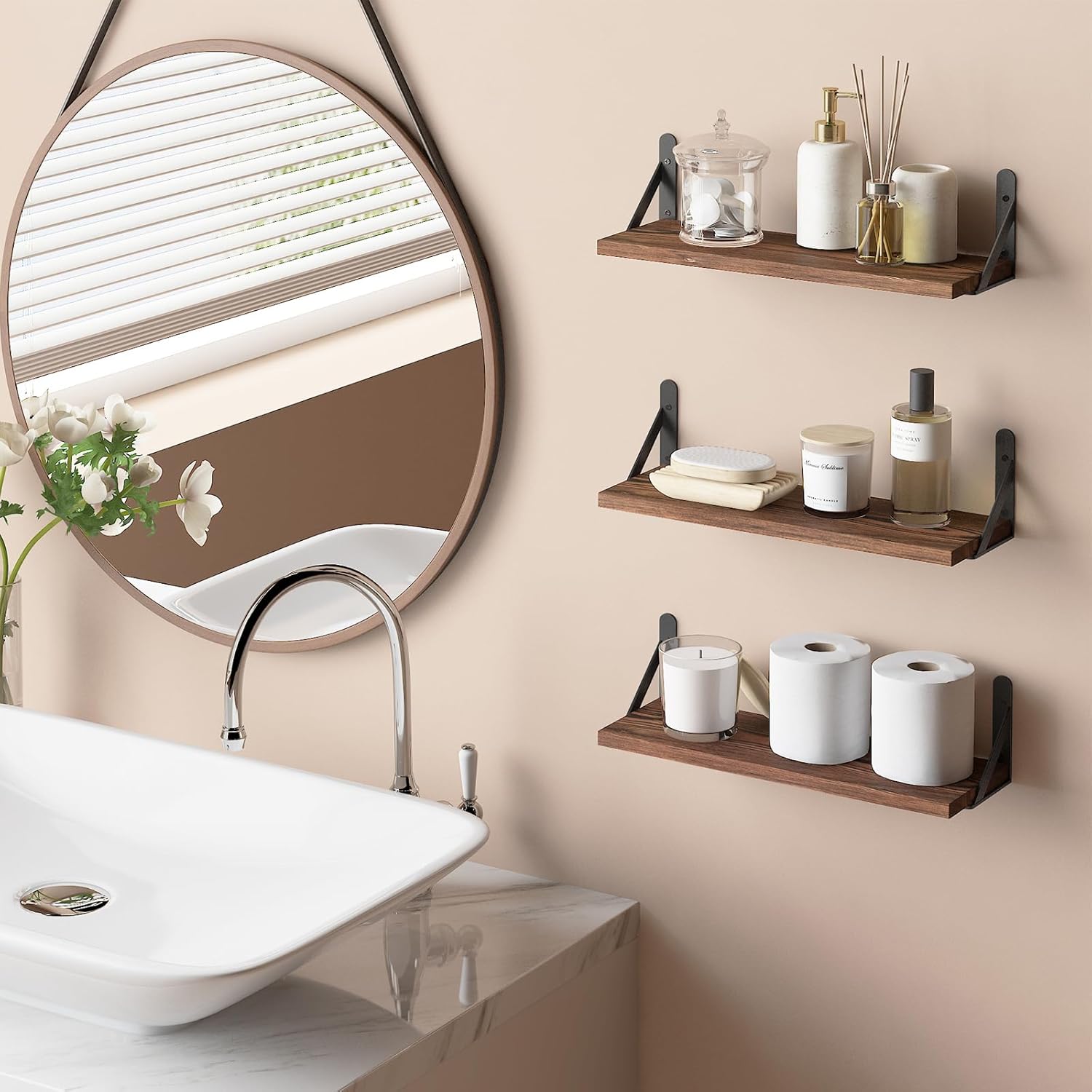 - 【Sturdy & Easy to Assemble】The Triangle shaped metal brackets are more sturdy, with a capacity of 40Lb. YGEOMER wood floating wall shelves for bathroom are super sturdy, very easy to install, all hardware and user manual was included.